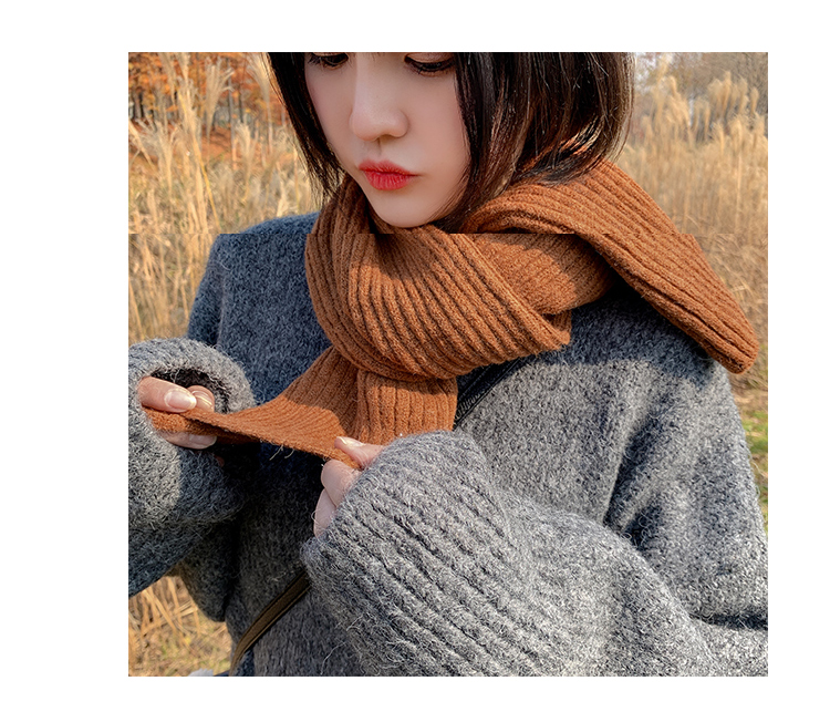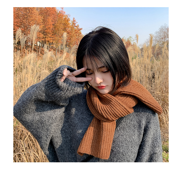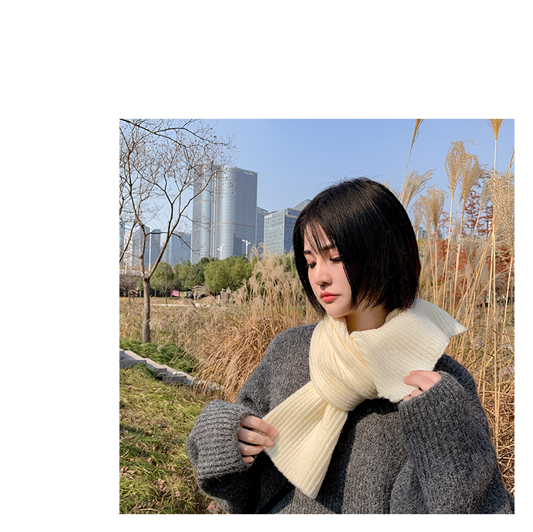 짧은 일본식 작은 스카프 여성용 겨울 따뜻한 단색 모직 니트 스카프 학생용 한국 스타일 남성 커플스토어 가기
