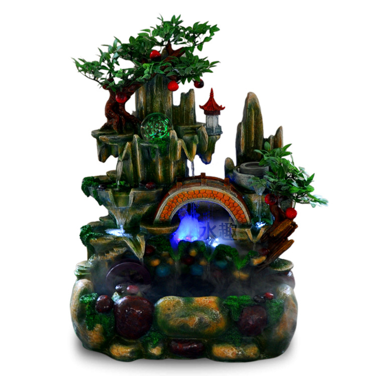 流水喷泉最大特点就是:可以净化空气、加湿除尘、释放大量的氧分子、特有的独立功水系统、能自动变化出多样式喷水方式、很少向外溅水滴等。别致明亮的陶瓷外观设计,为您营造高品质的生活。陶瓷,树脂室内喷相当于一个天然的室内加湿器,通过流水亭系列陶瓷,树脂室内喷泉的水循环系统,可吸附空气中的细小颗粒物和有害气体,切断所有家用电器中所产生的有害电磁波,起到了净化室内空气、降低室内温度和污染、释放氧分子和延缓衰老等作用。其七彩LED灯光照明,更是增添了室内神秘高贵的气氛。