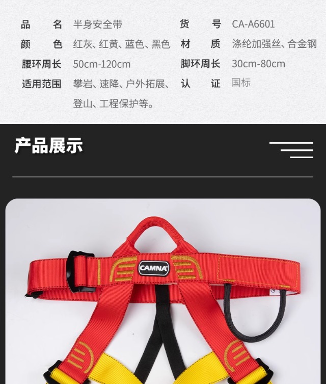 Canle 내리막 안전 벨트 야외 등산 및 암벽 등반 안전 벨트 고도 안전 벨트 허리 절반 안전 벨트스토어 가기