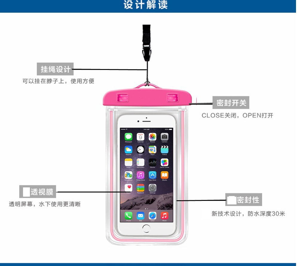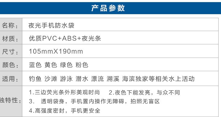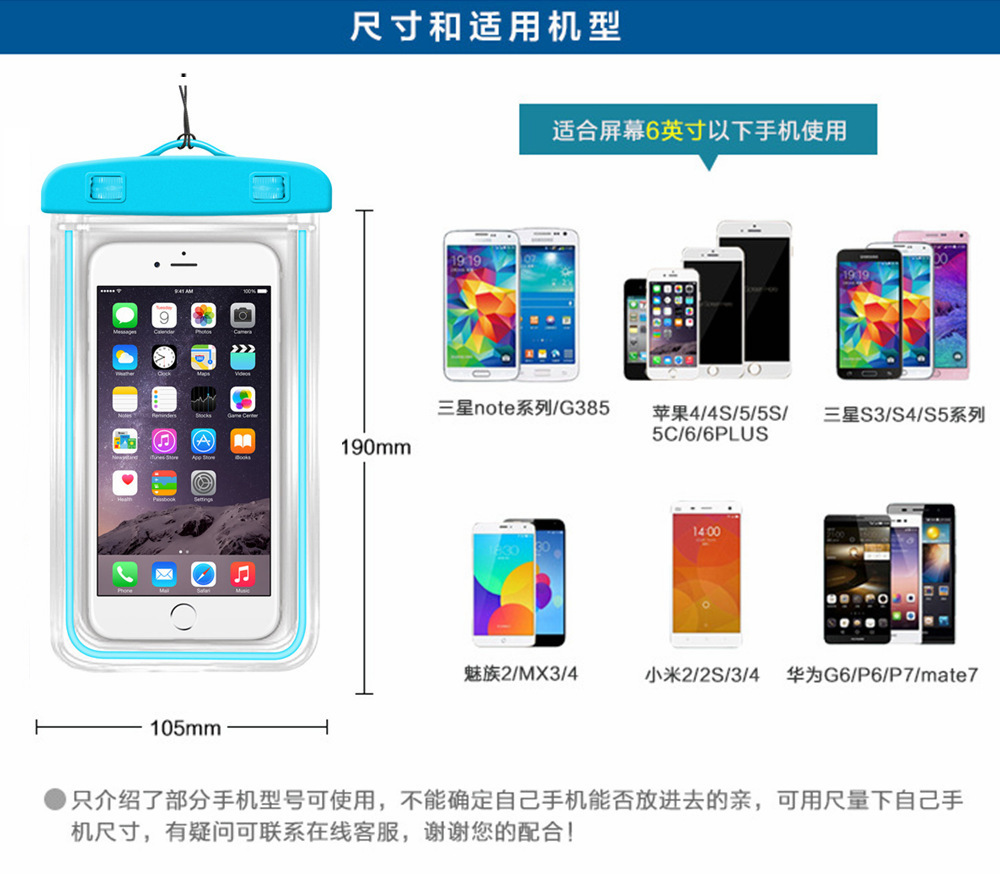 Dropshipping 가능 tpu 휴대 전화 방수 가방 커버 형광 휴대 전화 방수 가방 빛나는 휴대 전화 방수스토어 가기
