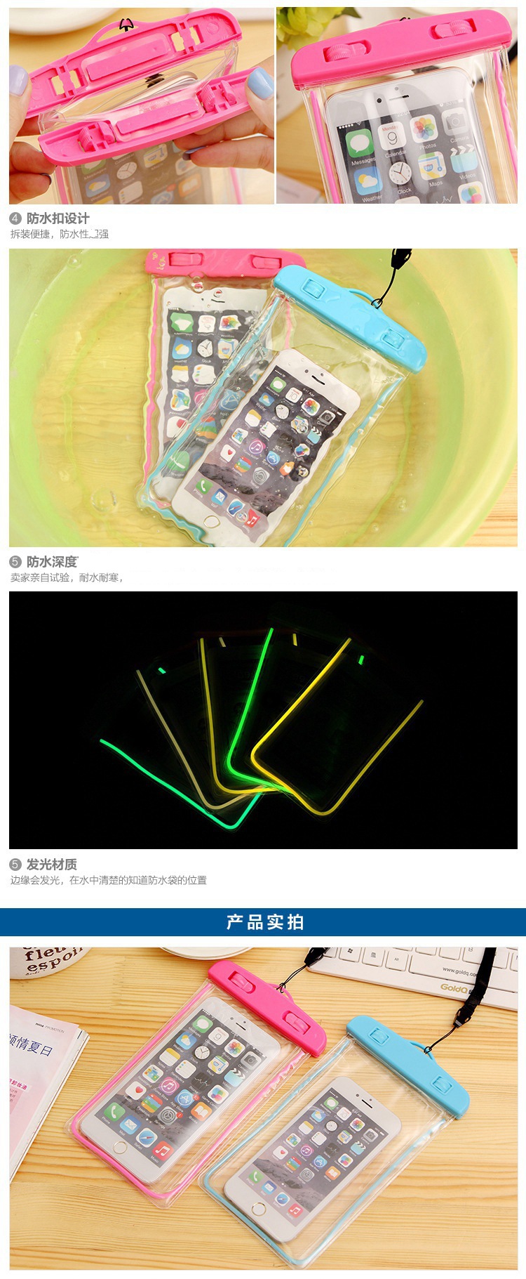 Dropshipping 가능 tpu 휴대 전화 방수 가방 커버 형광 휴대 전화 방수 가방 빛나는 휴대 전화 방수