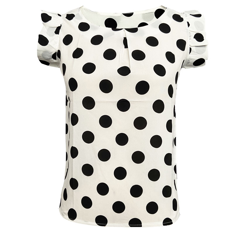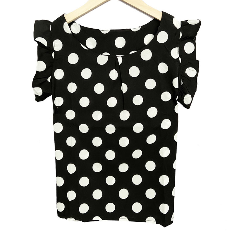 새로운 여름 플러스 사이즈 폴카 도트 여성의 반소매 쉬폰 탑 슬림핏 프릴 플라잉 슬리브 쉬폰 셔츠 공장 9020스토어 가기