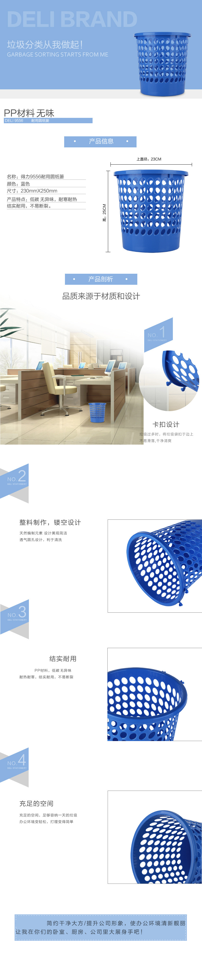 9556 델리 쓰레기통 직경 24cm 원형 종이 바구니 사무실 폐지 바구니 쓰레기통 청소통