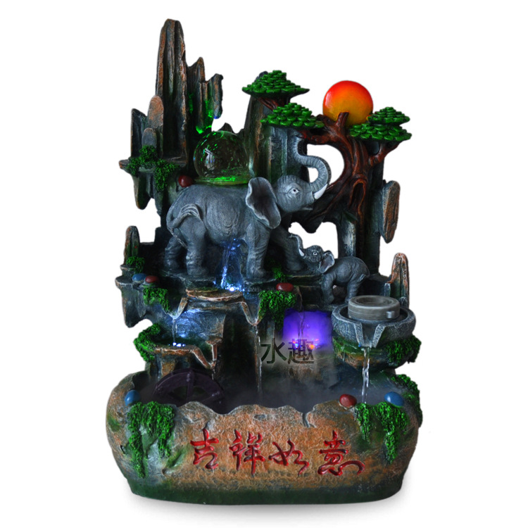 새로운 대형 바위 유수 어항 장식품 코끼리 수지 분수 옥내 물 특집 이우 수지 공예스토어 가기