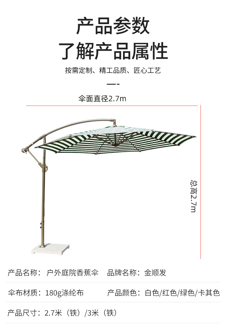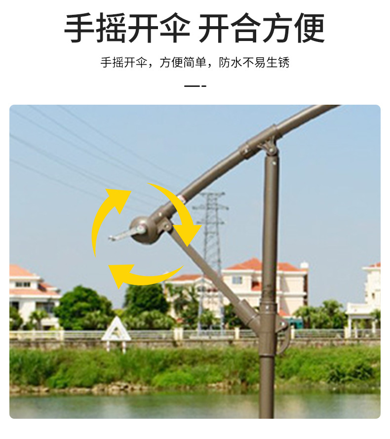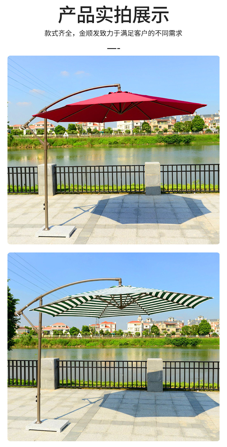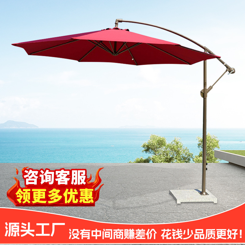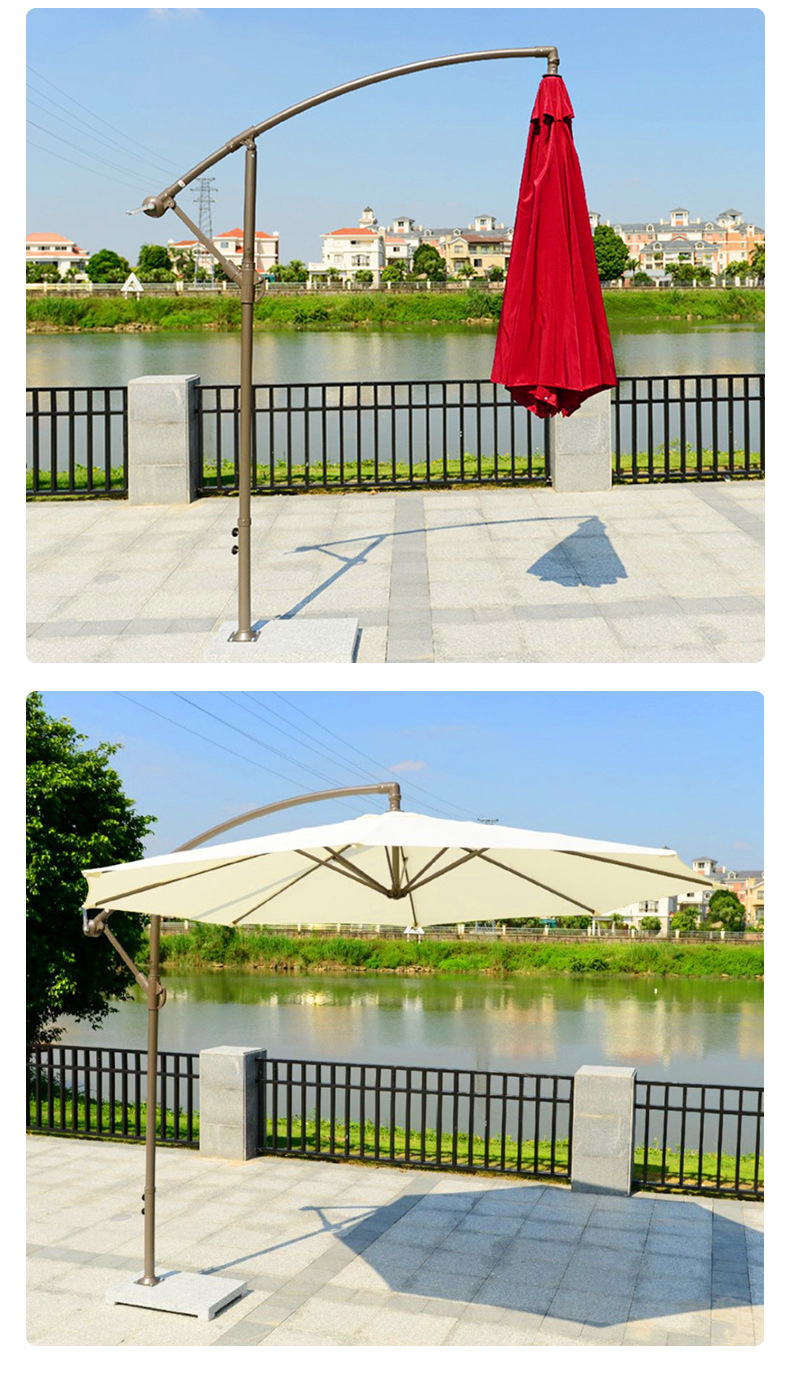 공장 직접 공급 고급 야외 사이드 우산 라운드 바나나 우산 손으로 압연 해변 레저 안뜰 우산 호텔 우산