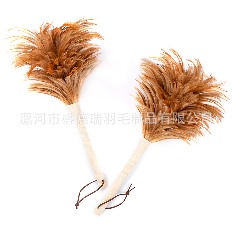 品名:红羽毛毛掸子 规格:全才约41厘米,手柄16厘米(手工制品每款有差距) 材质:公鸡羽毛,实木手柄,真皮挂绳 工艺:纯手工制作 主要用途:汽车、高档家具、电脑、精密仪器、瓷器古董等 使用保养:温水轻轻揉洗,晾干或吹干,羽毛更加 蓬松。 温馨提示:鸵鸟毛有少许味道,请打开包装晾晒几天,羽毛会自然蓬松展开。手工产品会有绒毛和碎片掉落是正 常现象,用几次就好。