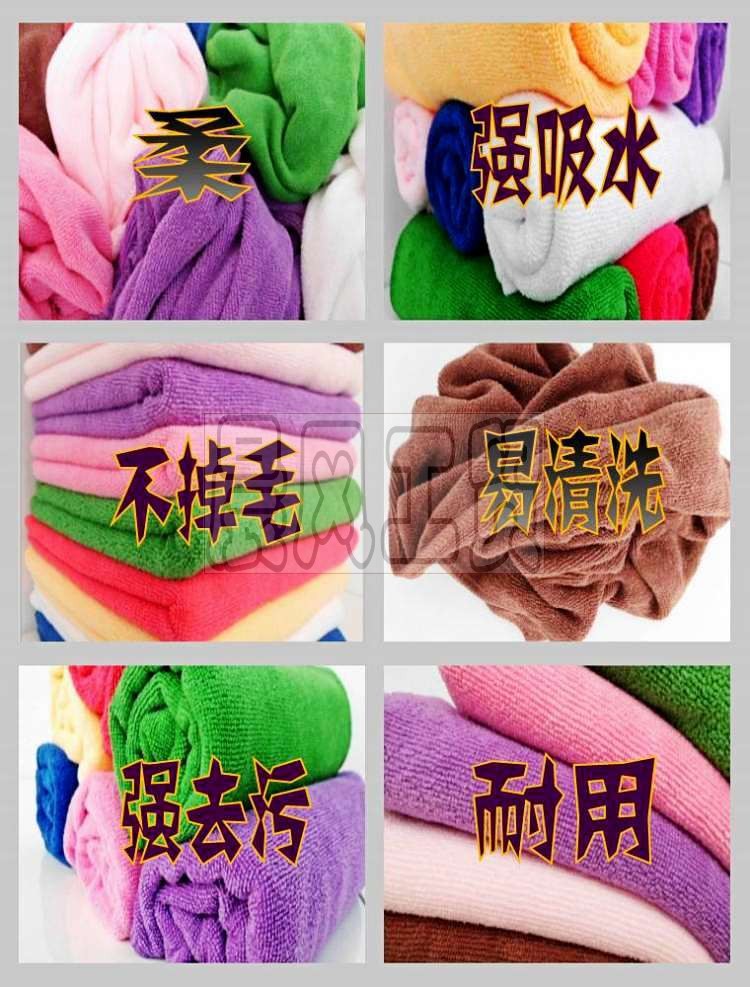 五、易清洗:普通毛巾使用时,特别是天然纤维毛巾,将被擦物表面的灰尘、油脂、污垢等直接吸收到纤维内部,使用后残留于纤维之中,不易清除,用了较长时间后甚至会变硬失去弹性,影响使用。而超细纤维毛巾是把污物吸附于纤维之间(而不是纤维内部),再加之纤维纤度高、密度大,因此吸附能力强,使用后只需用清水或稍加洗涤剂清洗即可。