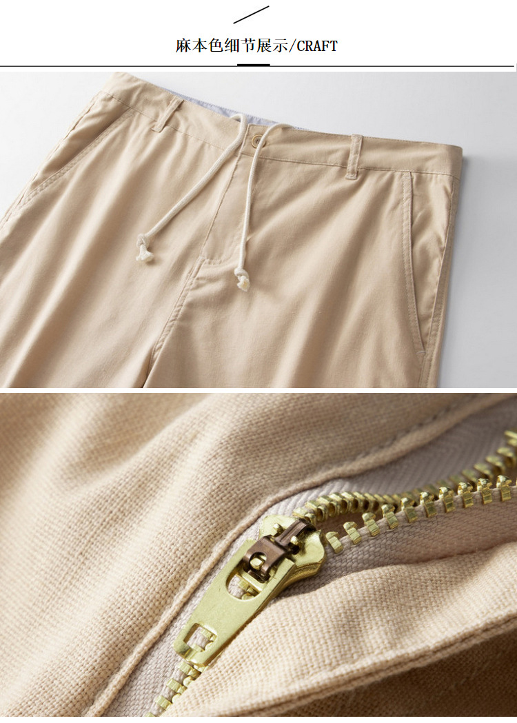 여름과 가을 남성용 린넨 반바지 면과 린넨 남성용 느슨한 단색 캐주얼 바지 얇은 린넨 미디엄 팬츠 통기성