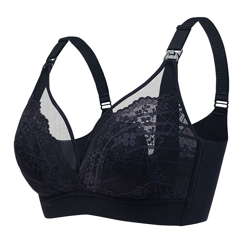 임신 모성 엄마 메쉬 레이스 통기성 수유 브래지어 없음 스틸 링 속옷 전면 상단 개방 모유 수유 브래지어