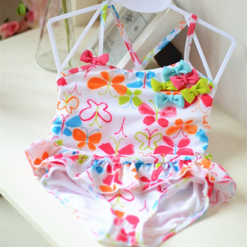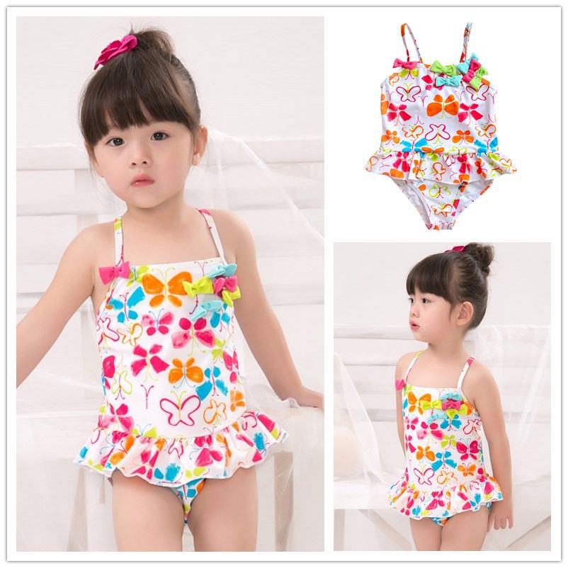 어린이 수영복 아기 작은 중학교 큰 아이 귀여운 소녀 학생 흰색 나비 프린트 스커트 원피스 수영복 온천스토어 가기