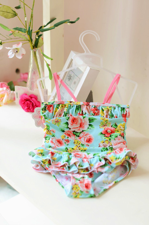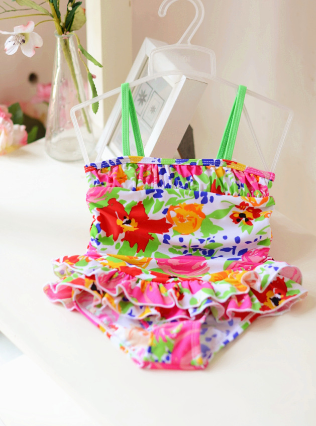 대형 및 중형 소녀와 학생을위한 어린이 수영복 꽃 슬링 조정 귀여운 소녀의 접힌 스커트 원피스 수영복 조합스토어 가기