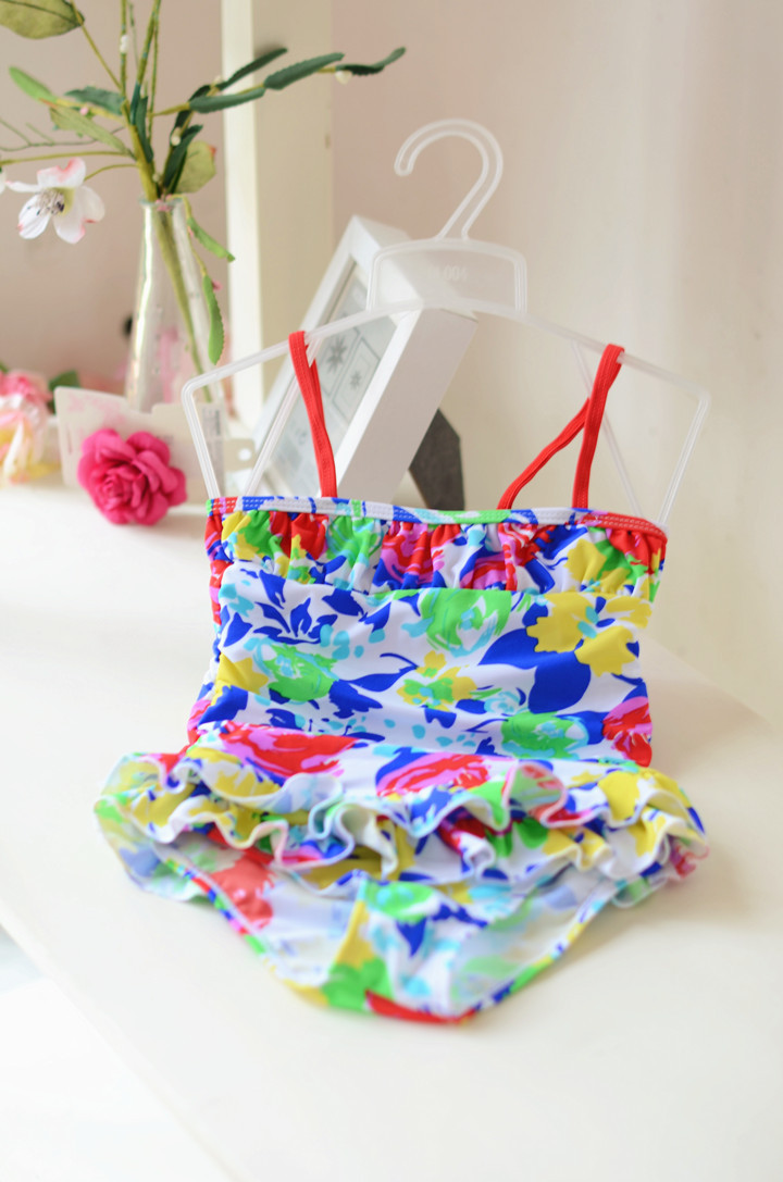 대형 및 중형 소녀와 학생을위한 어린이 수영복 꽃 슬링 조정 귀여운 소녀의 접힌 스커트 원피스 수영복 조합