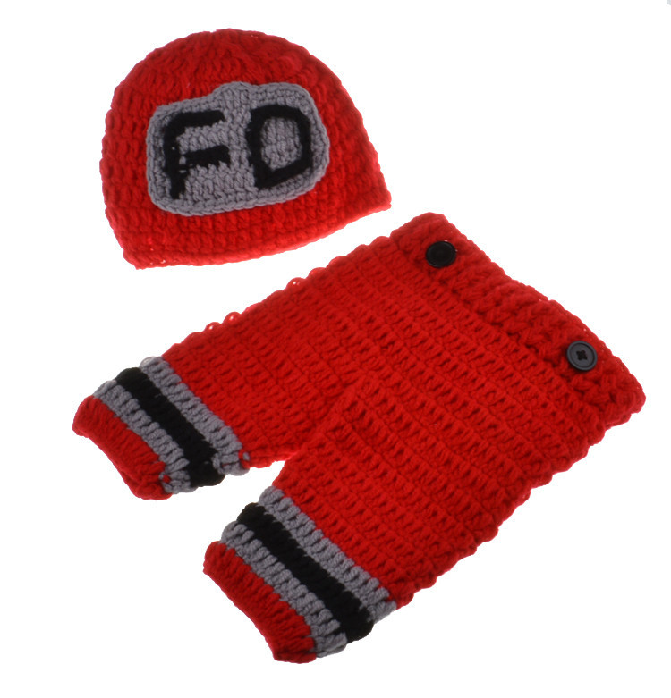 외국 무역 소방관 아기 사진 세트 FD 소방관 사진 소품 손 니트 어린이 여름 모자