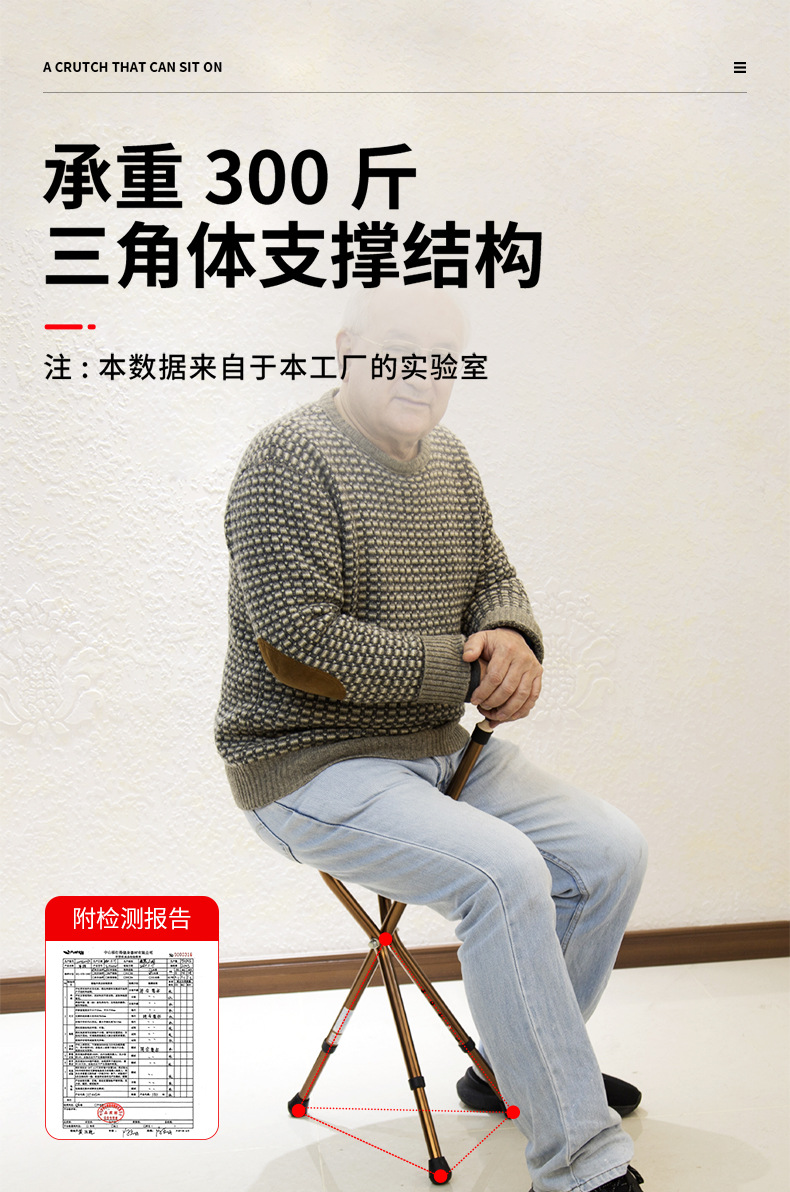 노인 알루미늄 합금 지팡이 의자 보행 스틱을위한 조명이있는 다기능 조명 삼각형 목발은 목발을 앉을 수 있습니다.스토어 가기