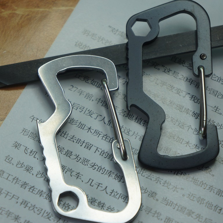 비 라벨 작은 각도 상어 EDC 다기능 D형 버클 스테인레스 스틸 카라비너 병따개 스프링 후크 버클 빠른 걸이