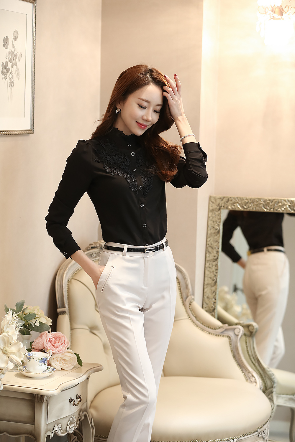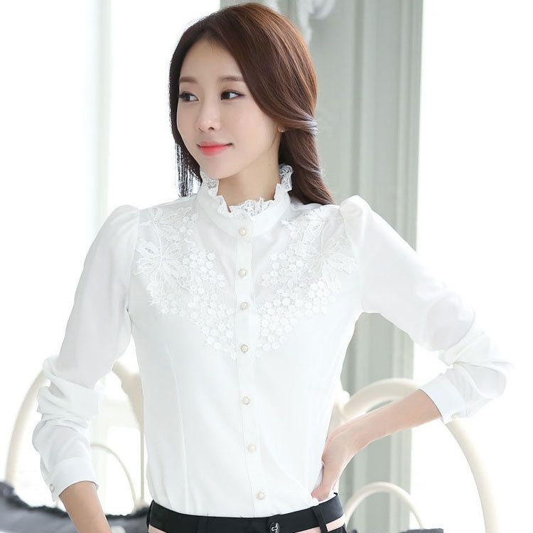 패션 봄 레이디 셔츠 여성용 셔츠 내부 셔츠 새로운 한국 쉬폰 OL 셔츠 여성용 긴팔 슬림핏 셔츠