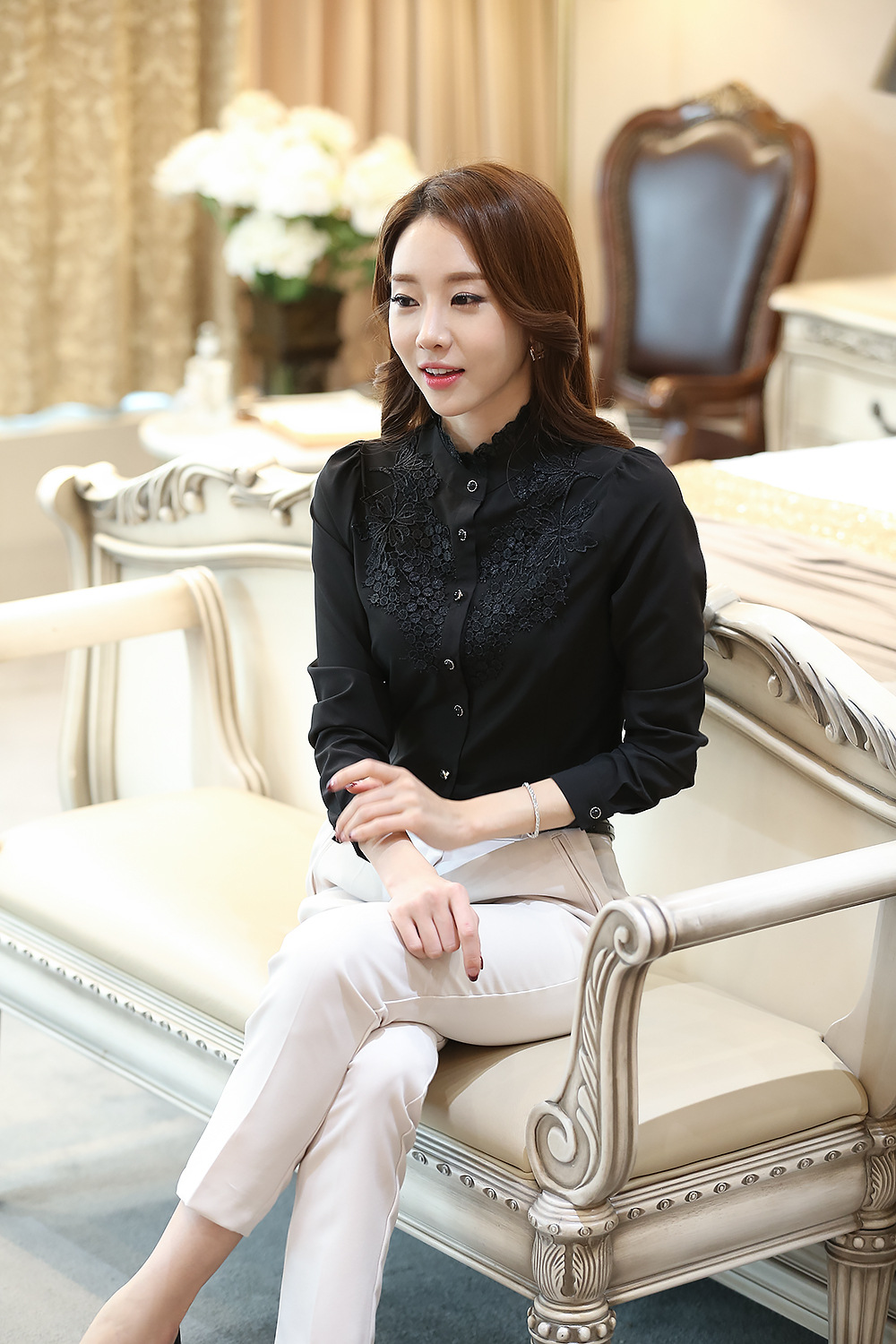패션 봄 레이디 셔츠 여성용 셔츠 내부 셔츠 새로운 한국 쉬폰 OL 셔츠 여성용 긴팔 슬림핏 셔츠스토어 가기