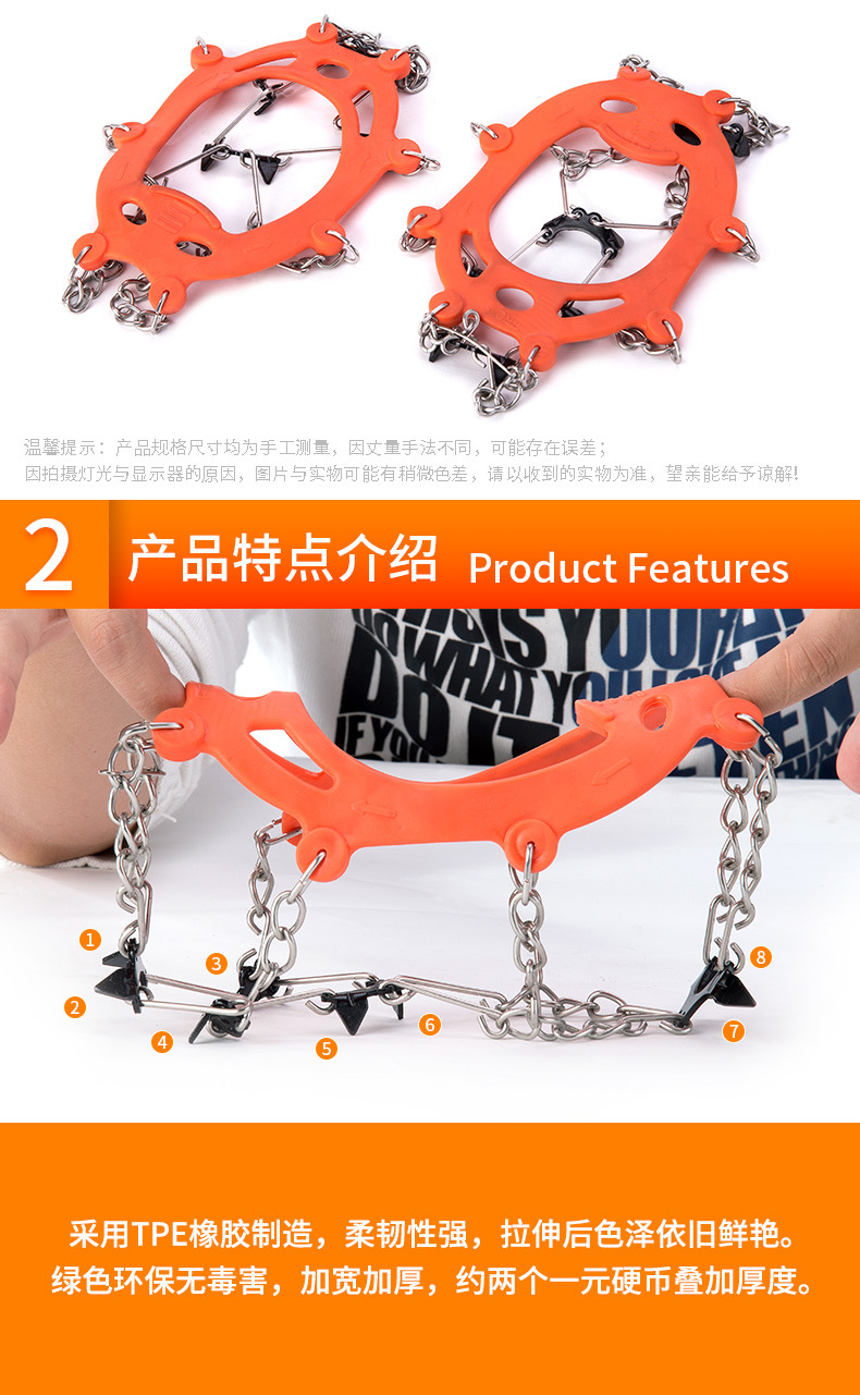 야외 미끄럼 방지 얼음 발톱 하이킹 경량 스파이크 하이 망간 스틸 등산 눈 8 이빨 얼음 발톱 얼음 등반 미끄럼 방지 체인스토어 가기