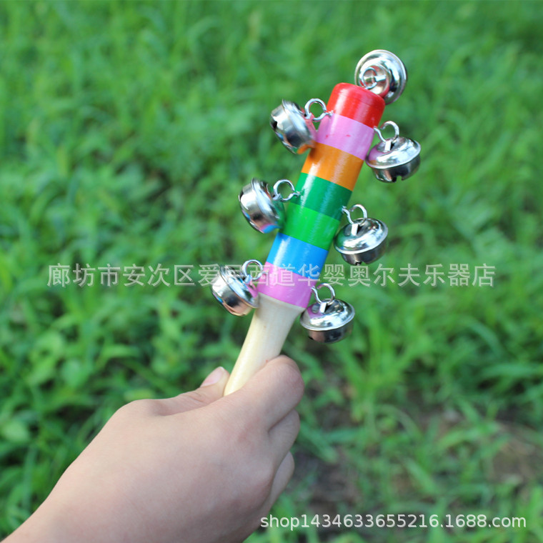 나무 끈 벨 오프 어린이 타악기 유치원 조기 교육 음악 10 벨 레인보우 스틱 벨 딸랑이스토어 가기