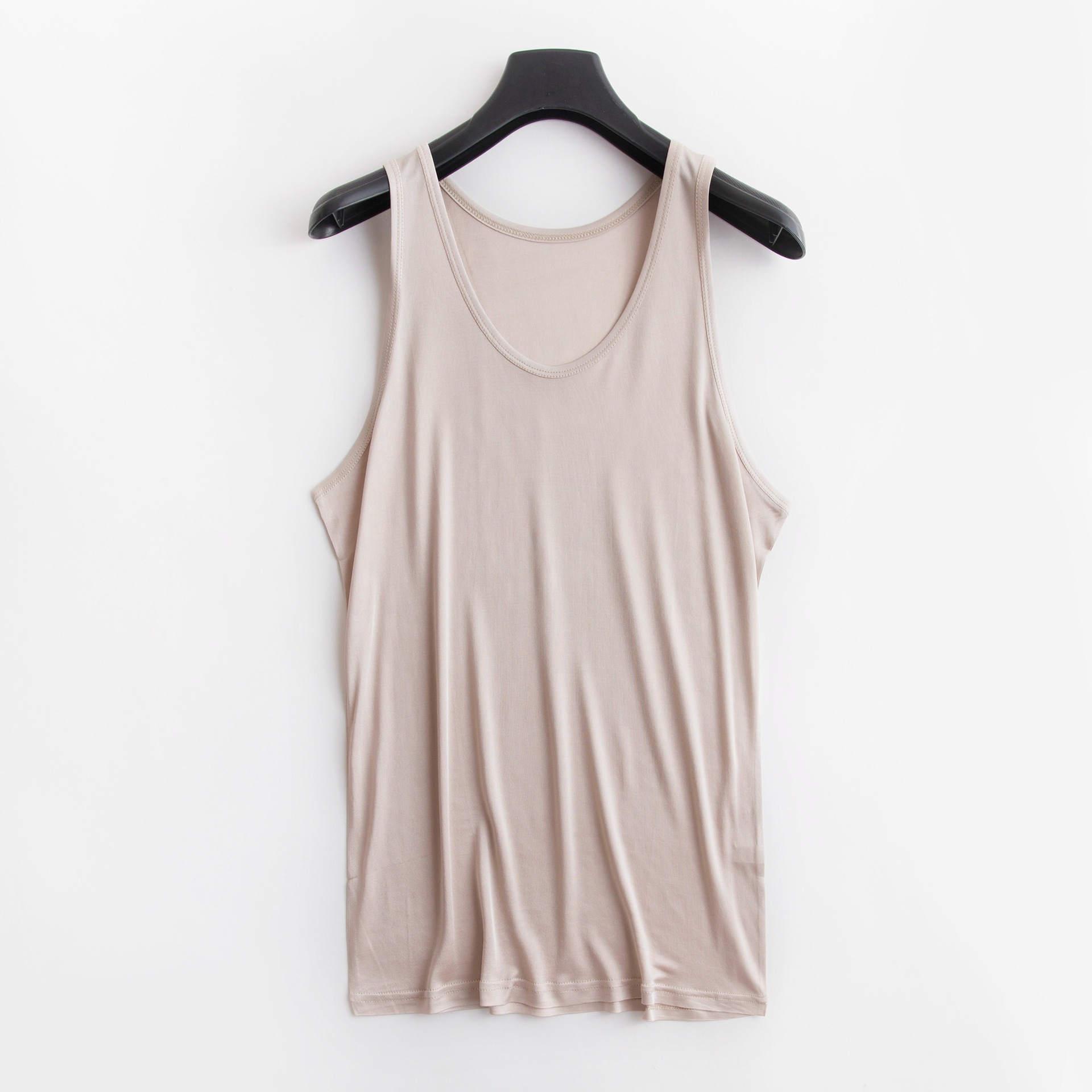 남자의 탱지 실크 조끼 느슨한 여름 민소매 플러스 사이즈 뽕나무 실크 니트 탑 와이드 숄더 조끼 남성용스토어 가기