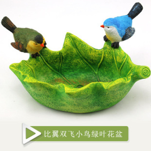 卡通田园比翼双飞小鸟绿叶花卉多肉微景观创意花盆办公室装饰花器