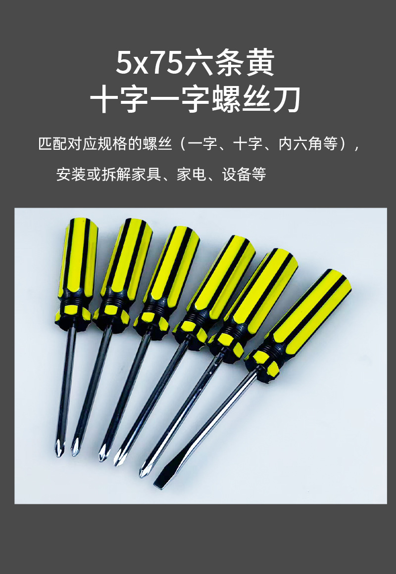 제조업체 도매 탄소강 드라이버 5X75 십자형 일자형 3inch 노란색 검정색 손잡이 자석 부착 가정용 드라이버스토어 가기