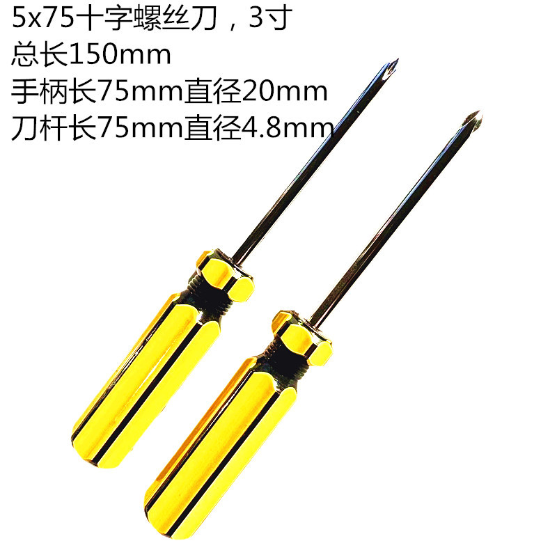 제조업체 도매 탄소강 드라이버 5X75 십자형 일자형 3inch 노란색 검정색 손잡이 자석 부착 가정용 드라이버