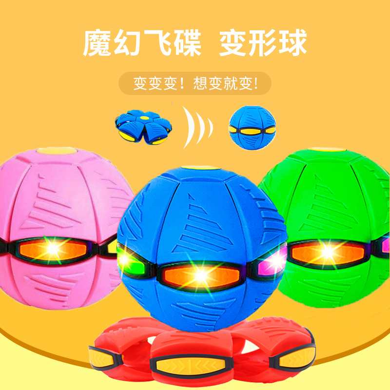批发闪光弹力踩踩球魔幻飞碟球变形发光减压飞盘亲子互动地摊玩具