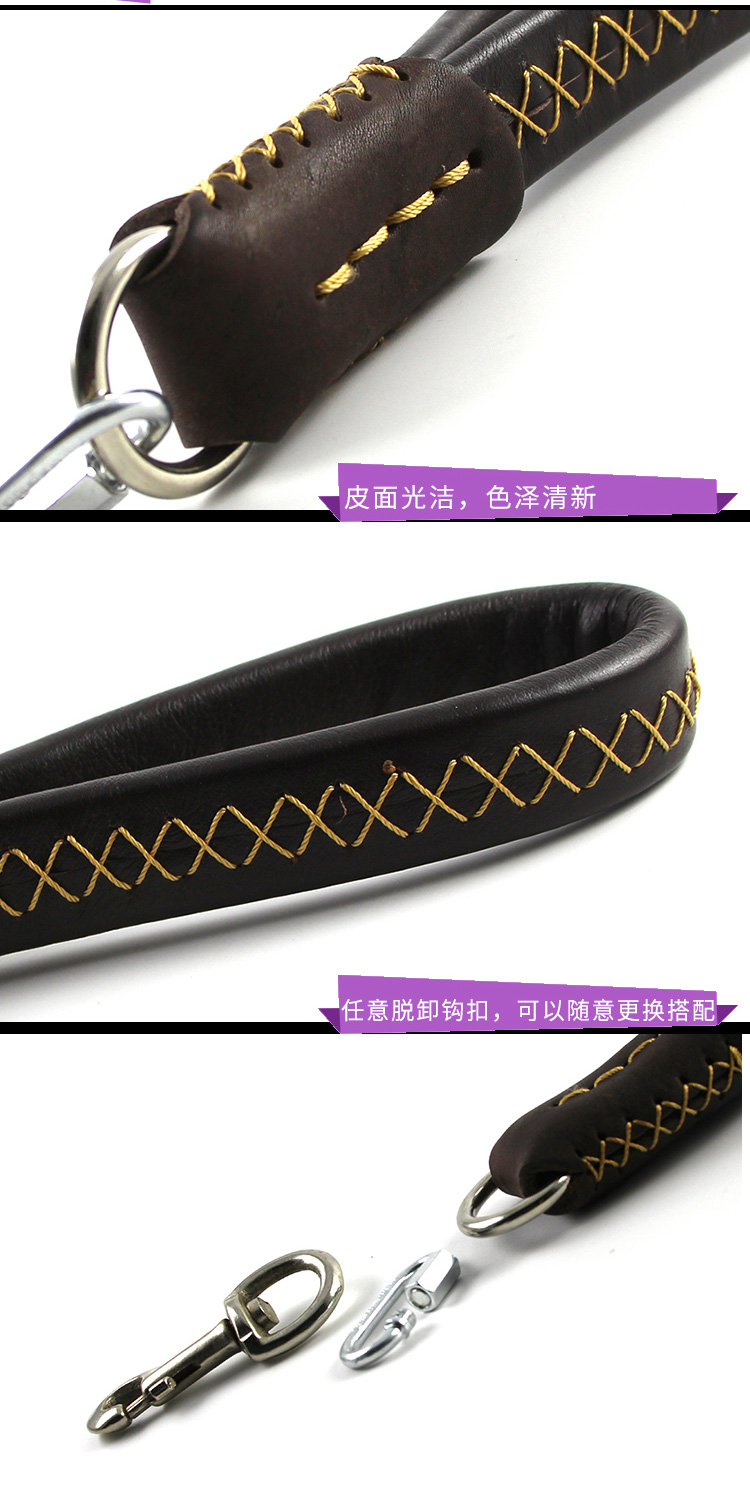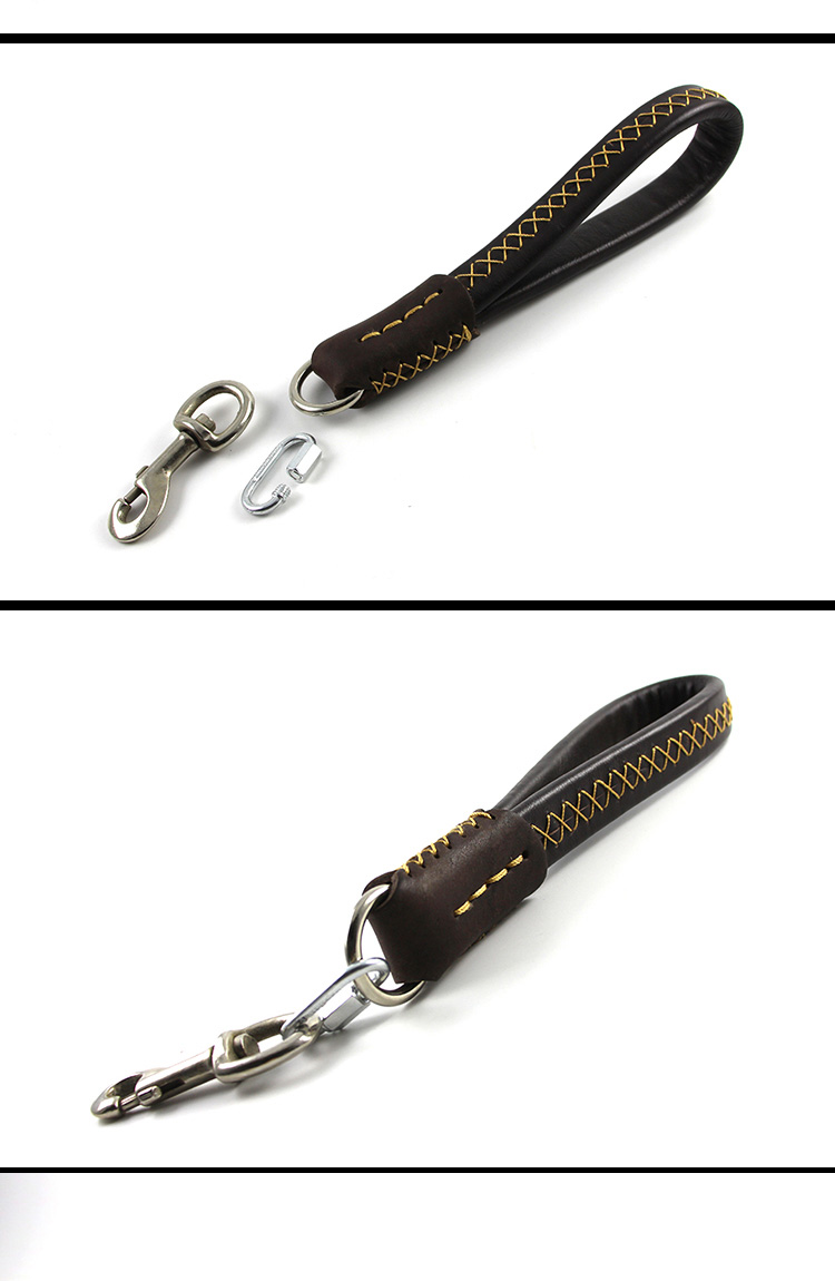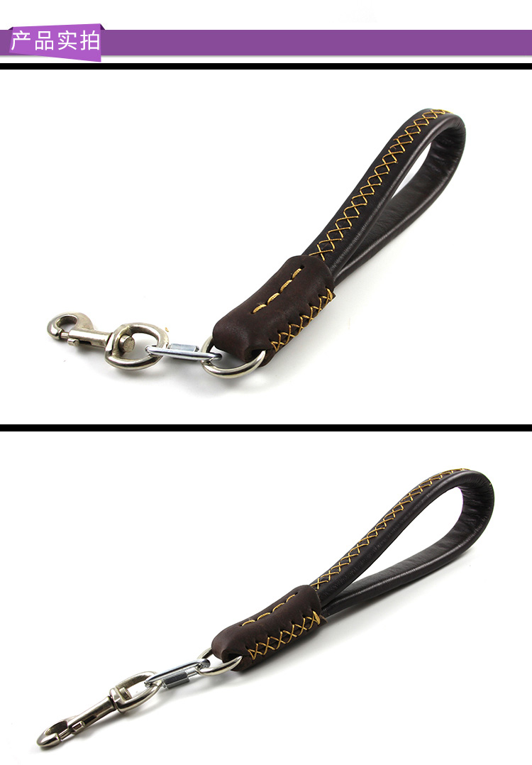 한 단계 짧은 소가죽 25cm 견인 벨트 대형 개 체인 견인 로프 개 로프 독일 셰퍼드 골든 리트리버 사모