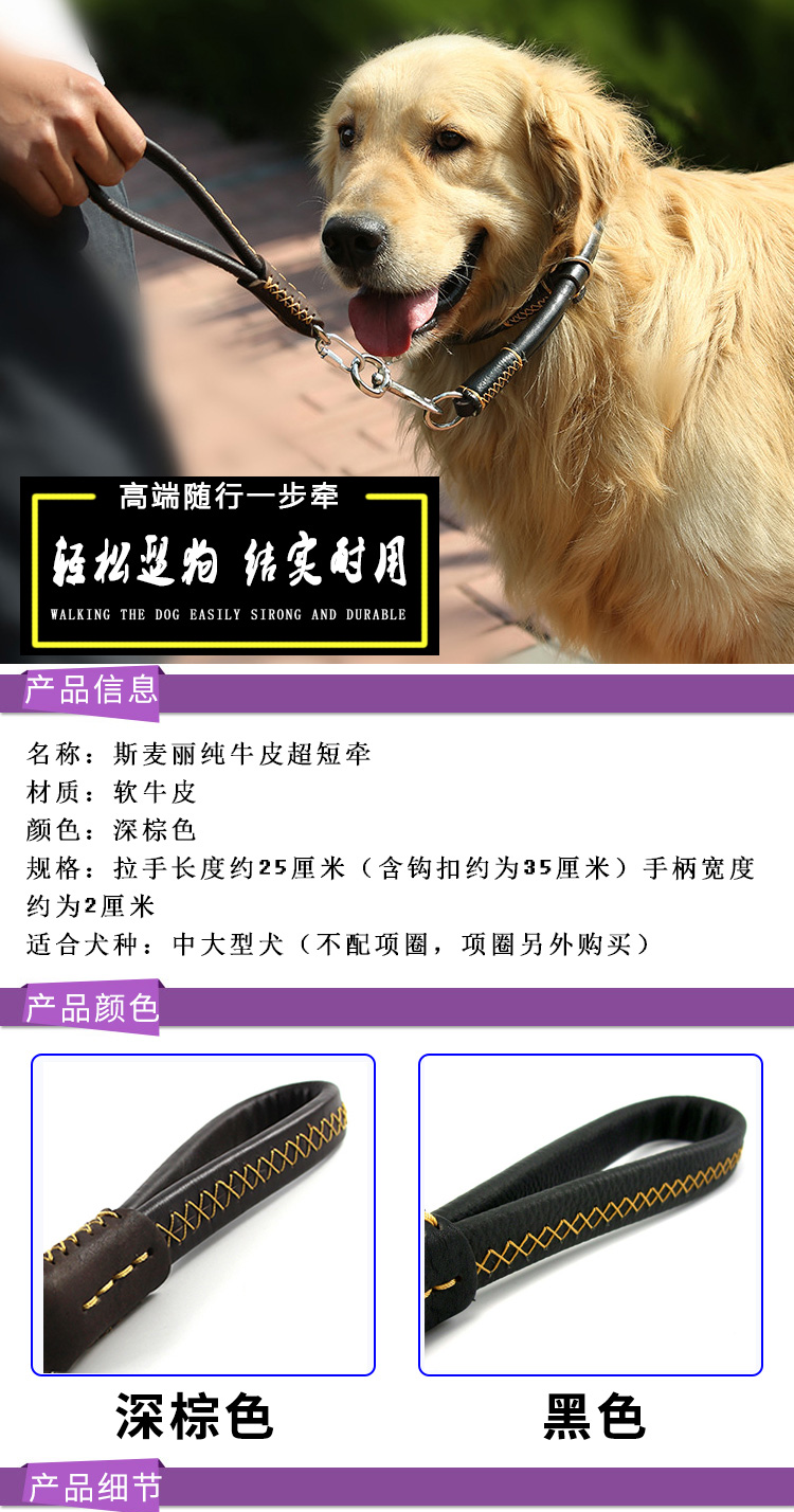 한 단계 짧은 소가죽 25cm 견인 벨트 대형 개 체인 견인 로프 개 로프 독일 셰퍼드 골든 리트리버 사모스토어 가기