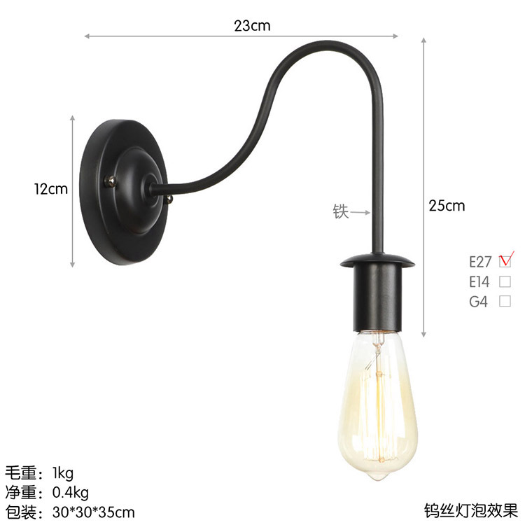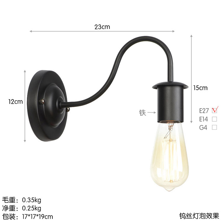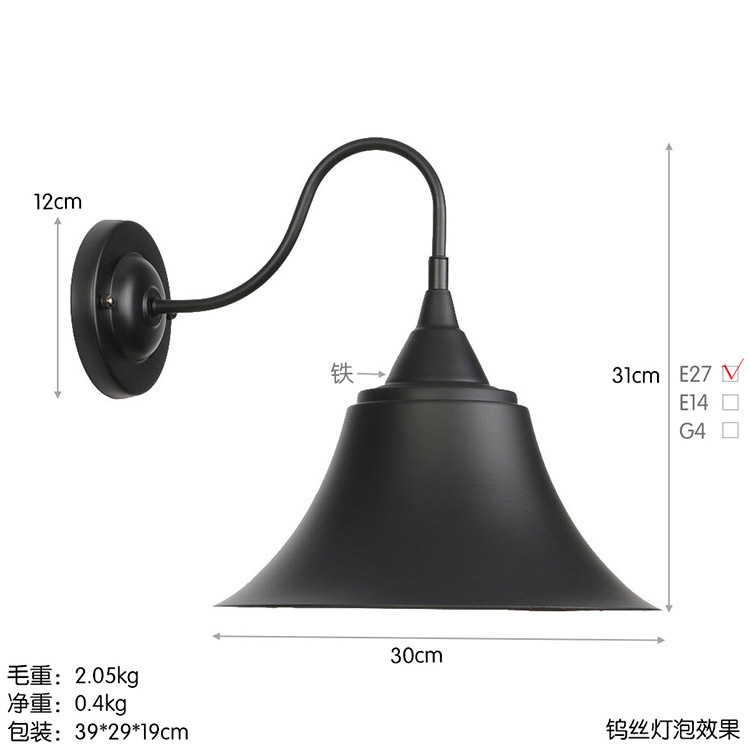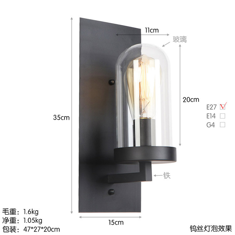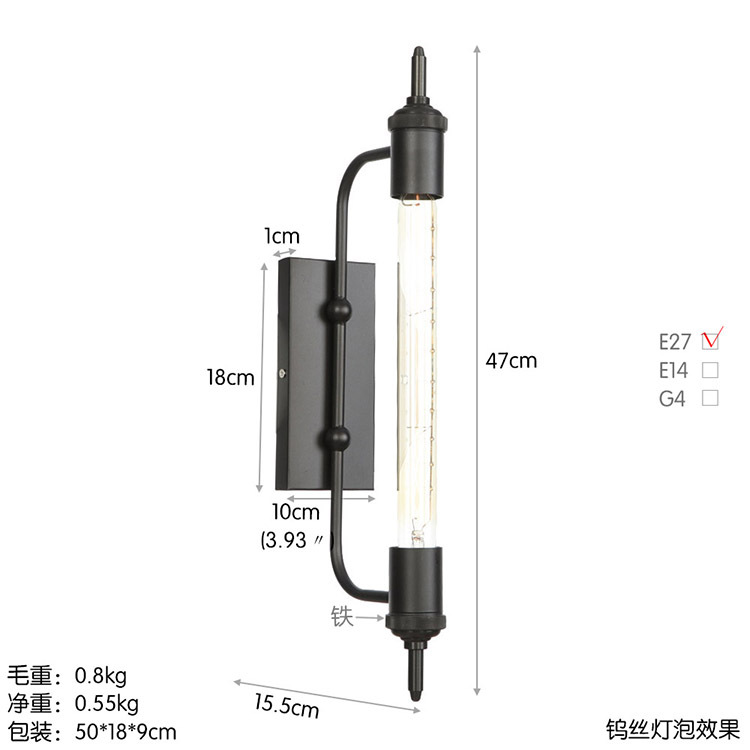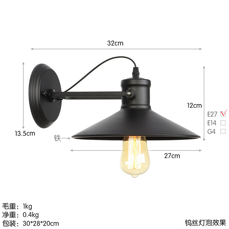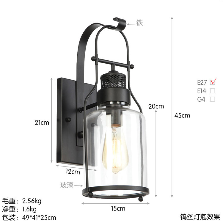 아메리칸 컨트리 스타일 로프트 벽 램프 창고 산업 거실 목회 통로 침대 옆 바 장식 벽 램프