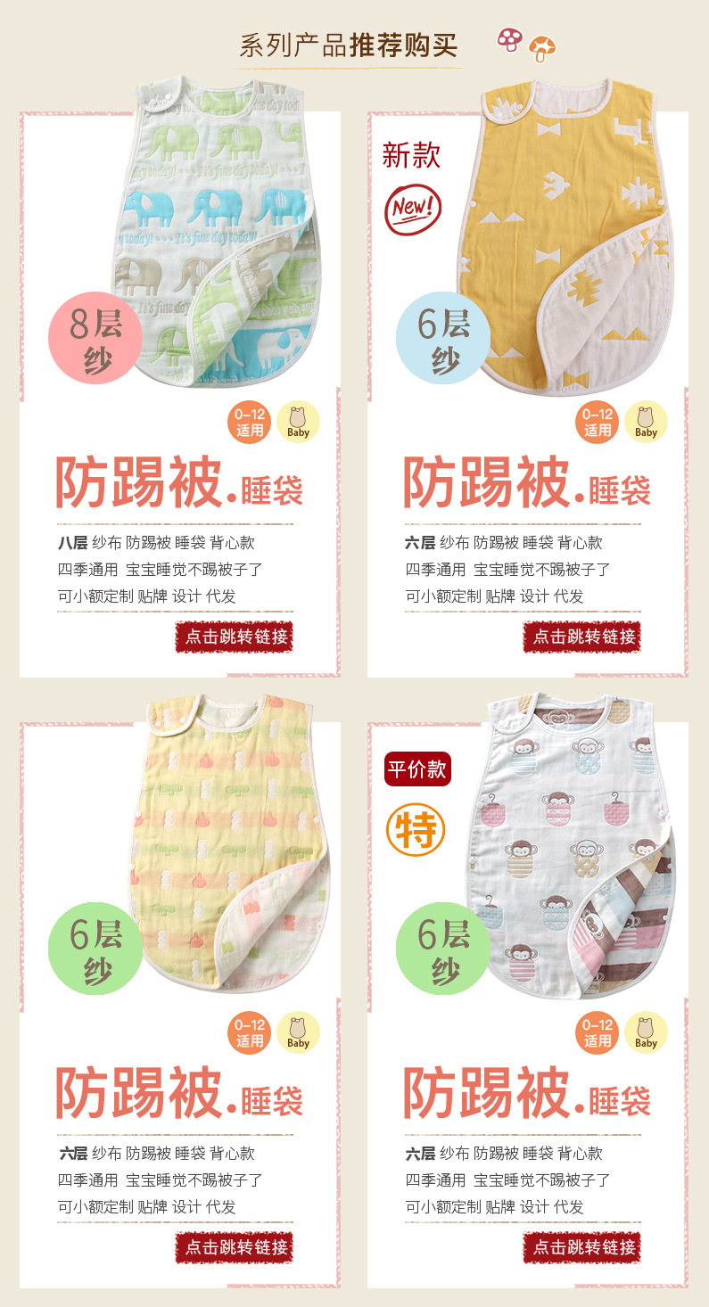 睡袋采用柔软纱布面料,0荧光剂,柔软,亲肤力
