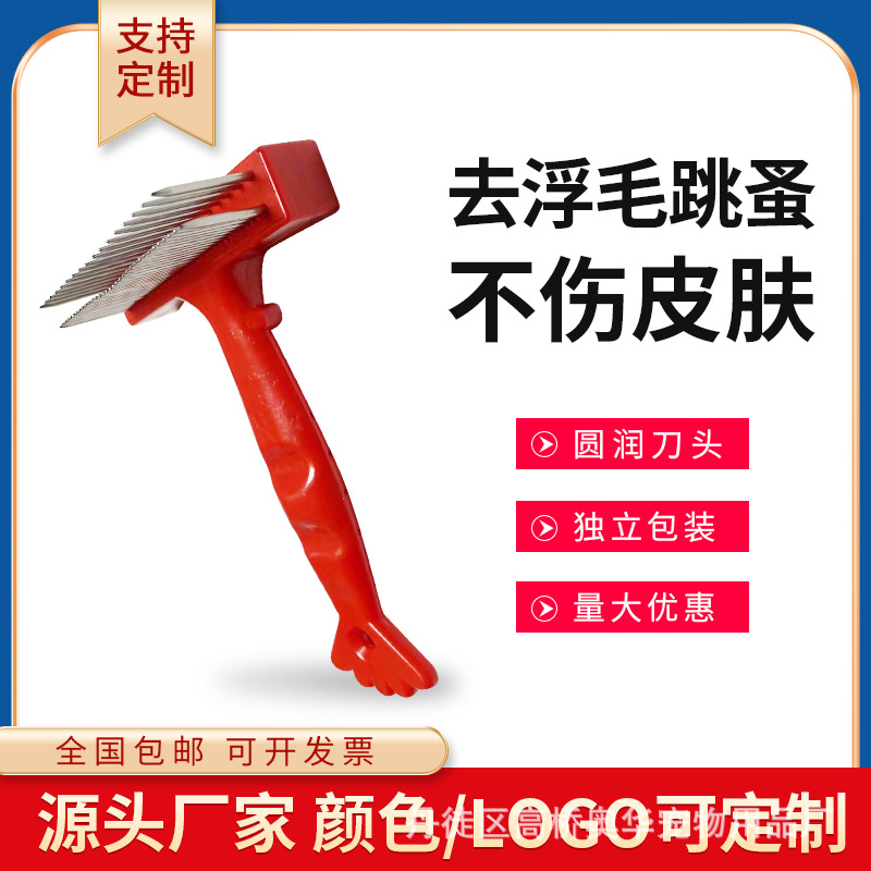 超 密齿间距钢针,针细且末端已磨圆润,可深入毛发底部,毛发及皮肤,梳理绒毛的同时能有效地去除爱宠身上的微小跳蚤。圆端彩色塑柄,防滑设计,捏握 方便,省力便捷。使用前要用刷子清理梳针的间距,梳针间如留有尘埃或杂物会影响去蚤的效果,要保持针间的清洁。梳出跳蚤后立即放入盛有肥皂水的盆里冲洗浸 泡,使其窒息死亡