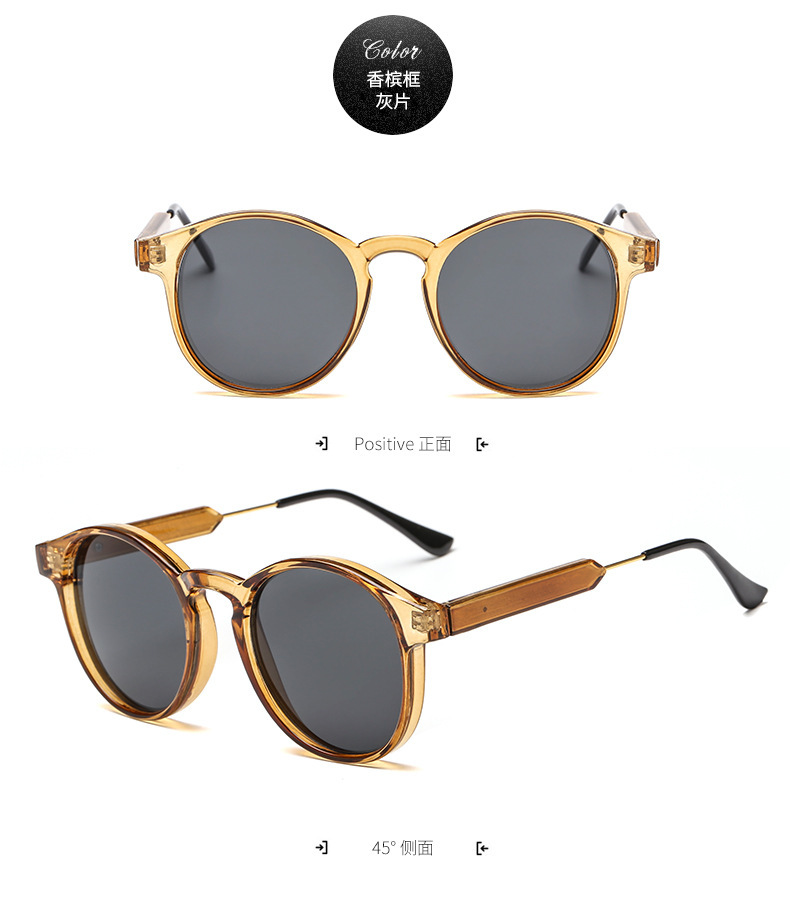 한국 얼짱 빈티지 투명 선글라스 트렌디 옐로우 라운드 프레임 한국식 얼굴 고정 선글라스 New