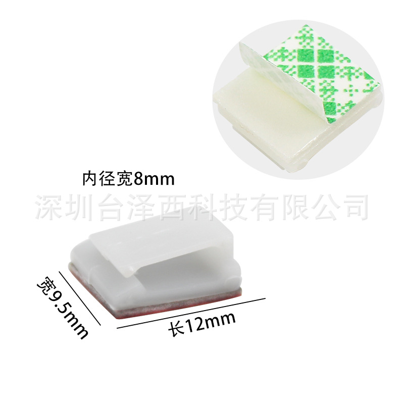 2、用途:背胶式(绿格胶),免钻孔,可快速捆扎及解开电线,可重复使用;