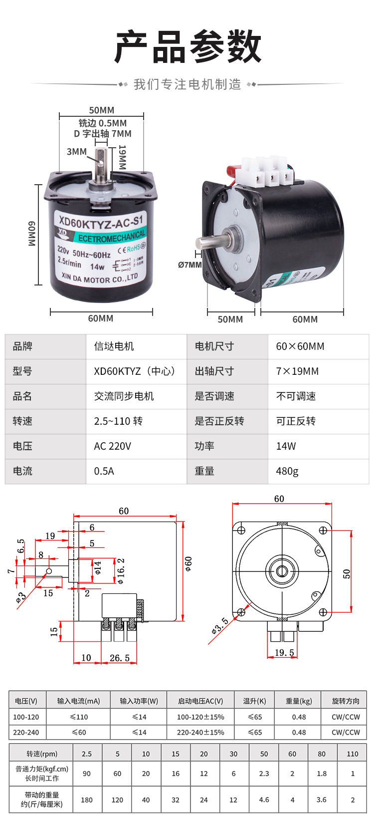 60KTYZ 영구 자석 동기 모터 220V 기어 감속 소형 모터 14W 마이크로 단상 AC 모터