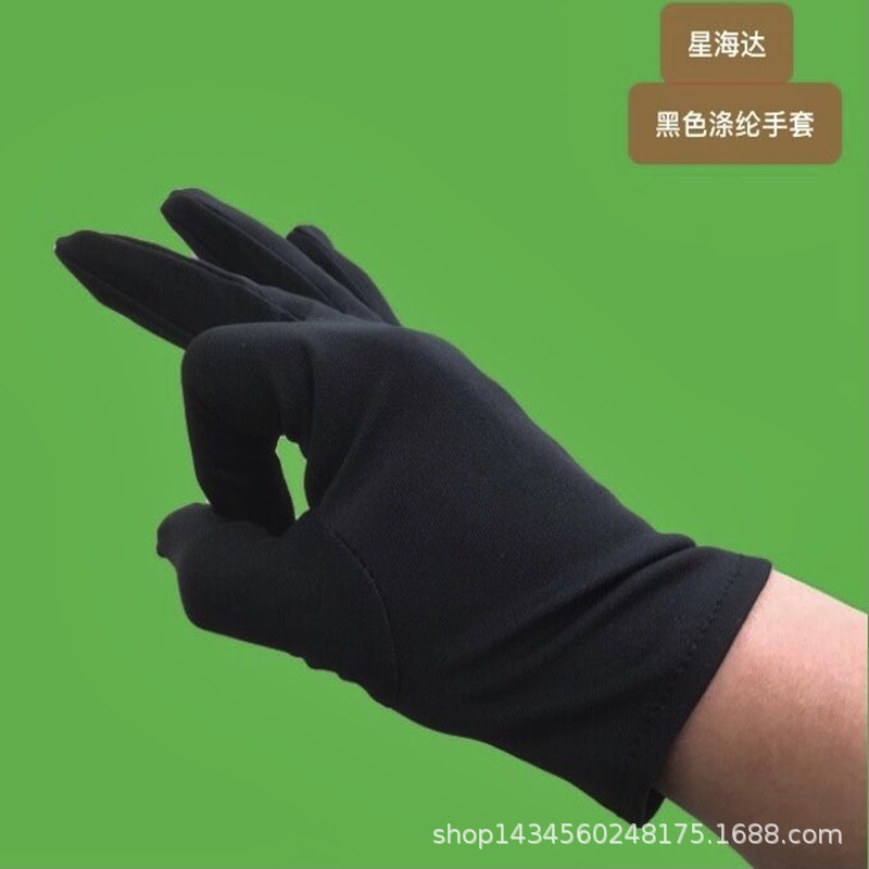 星海达黑色涤纶32针涤纶礼仪手套、采用高品质的黑色32针涤纶面料,柔软舒适,透气性强。耐磨性强,手指上沿条,大大增强手套的美观度,另外这款手套适合男女人群,满足不同手型需求。产品适用于开车.礼仪.作业.表演.婚庆,交通指挥.舞台表演,学生军训,办公室、售楼部,跳广场舞,工厂劳动等场所,提供舒适的使用效果。另外这款手套支持七天无理由退换,如有需要可开增值税普通电子发票。