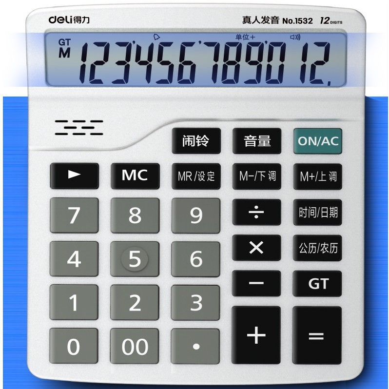 델리 1532 음성 컴퓨터 인간의 음성 12 비트 대형 화면 경제적 인 계산기 지원 알람 달력