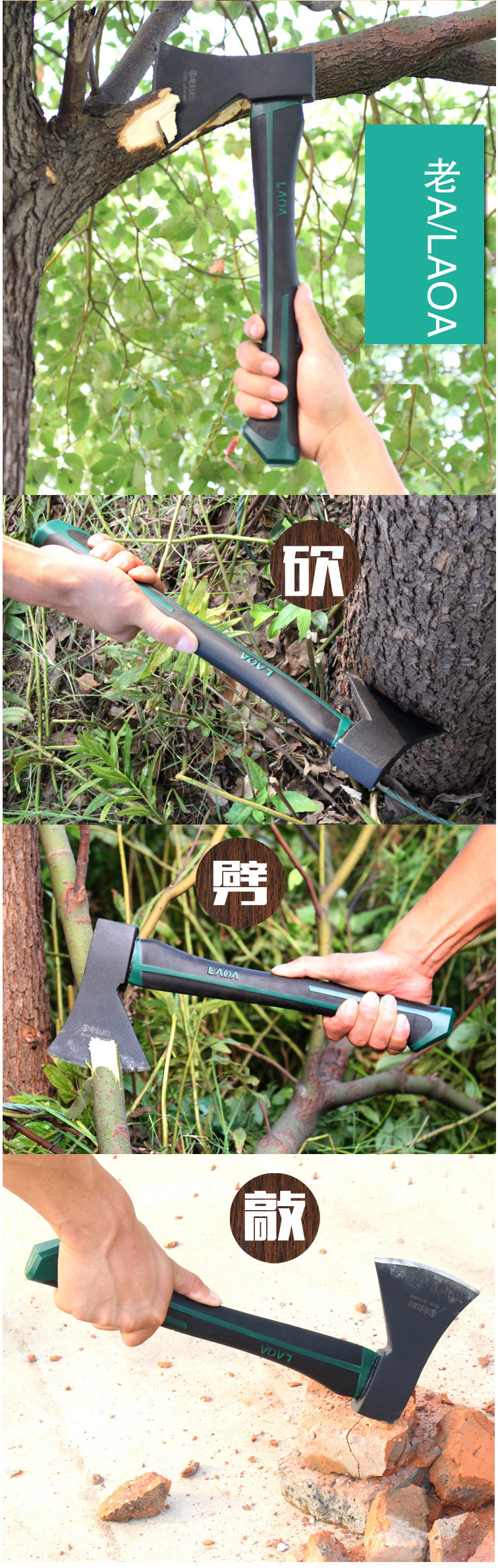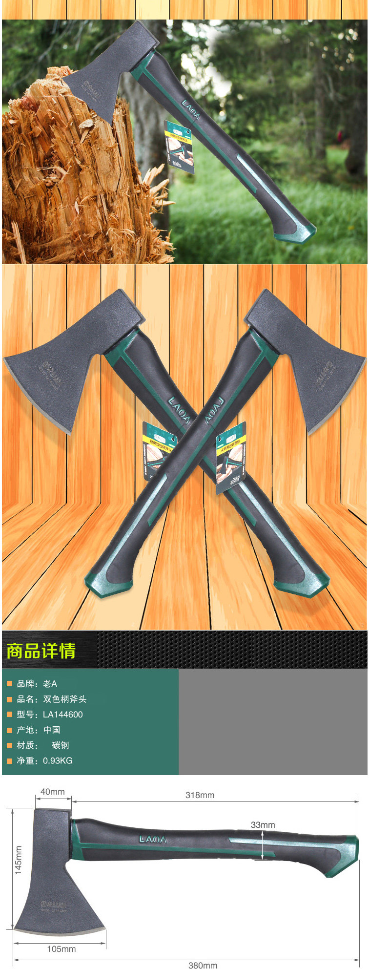 오래된 더블 컬러 핸들 목공 도끼 마운틴 도끼 캠핑 도끼 절단 화재 600g LA144600