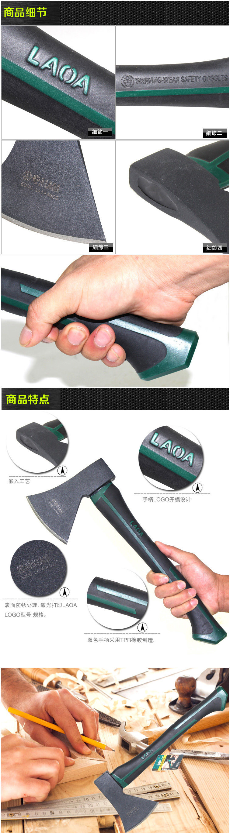 오래된 더블 컬러 핸들 목공 도끼 마운틴 도끼 캠핑 도끼 절단 화재 600g LA144600스토어 가기