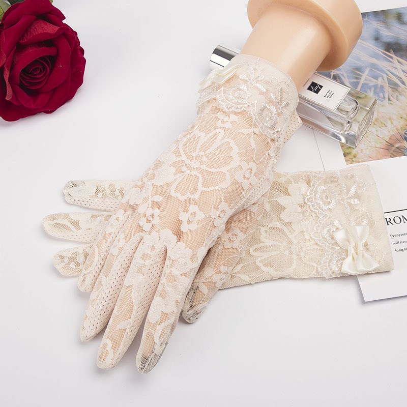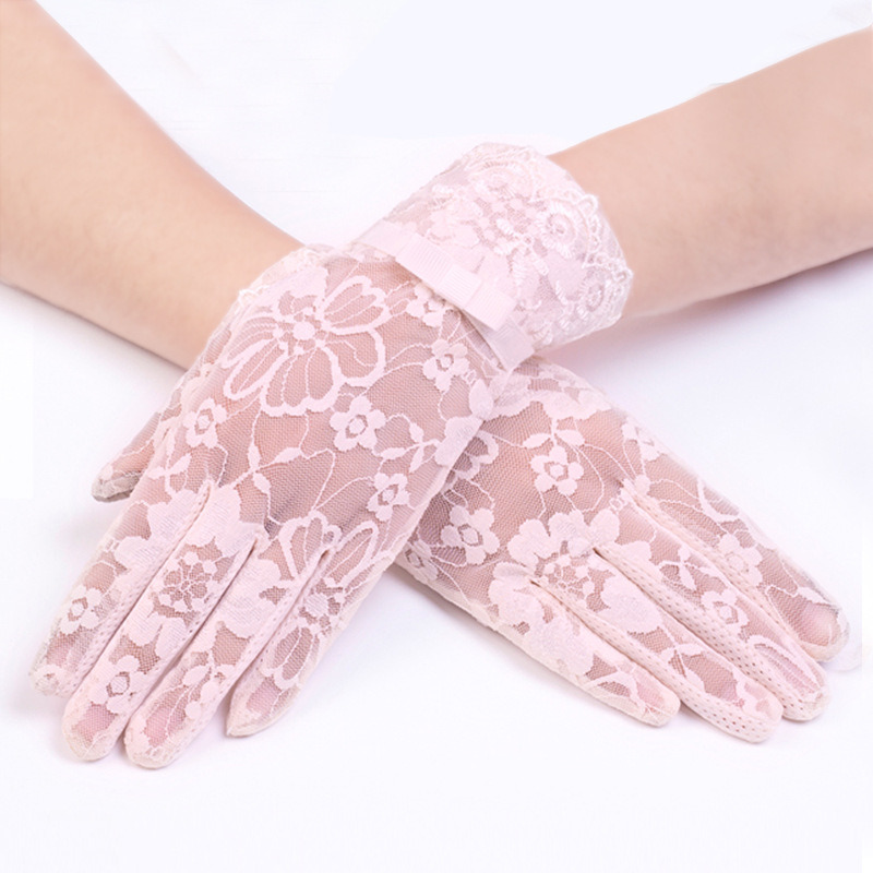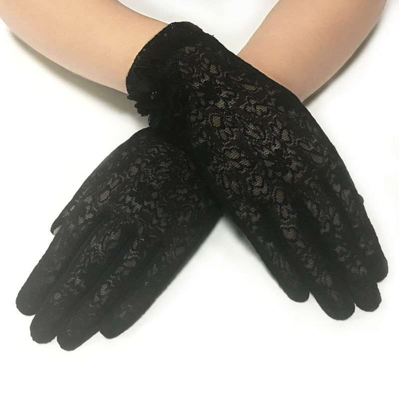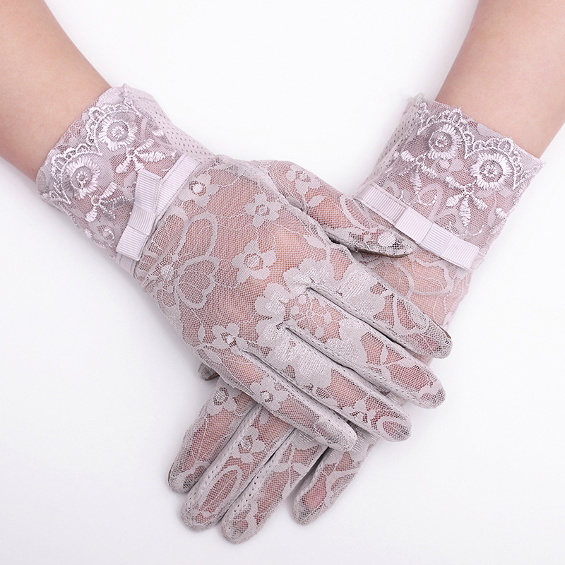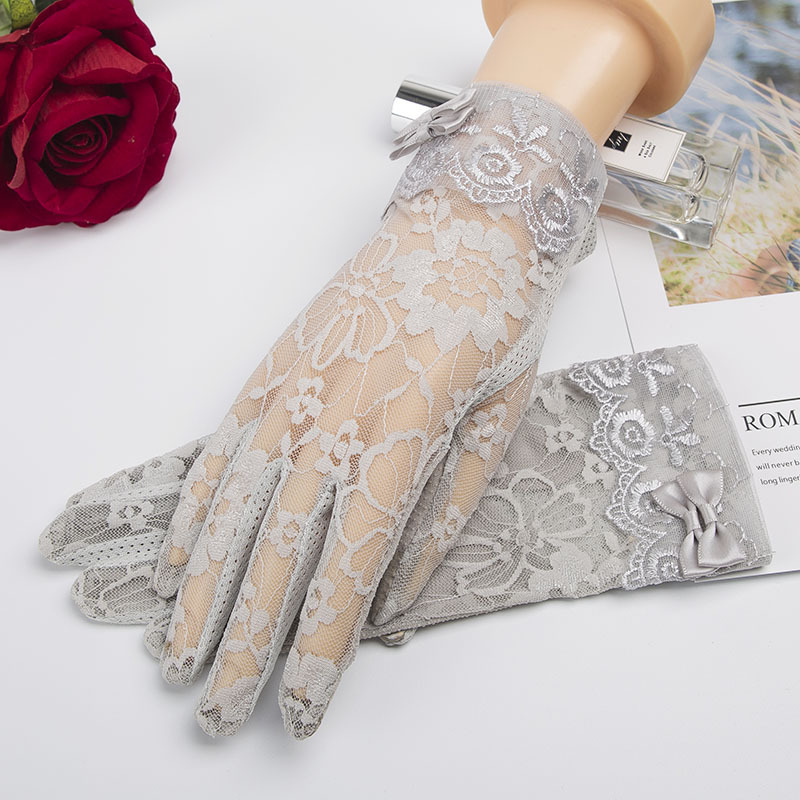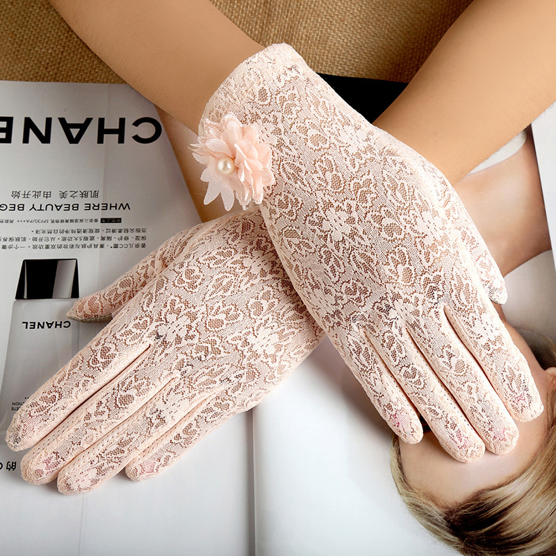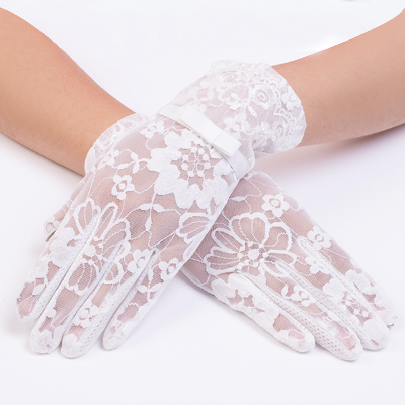 오노 여성용 레이스 대형 꽃무늬 자외선 차단 장갑, 짧은 여름용 전기차 운전용 여성용 미끄럼 방지 터치스크린 가능 여름용