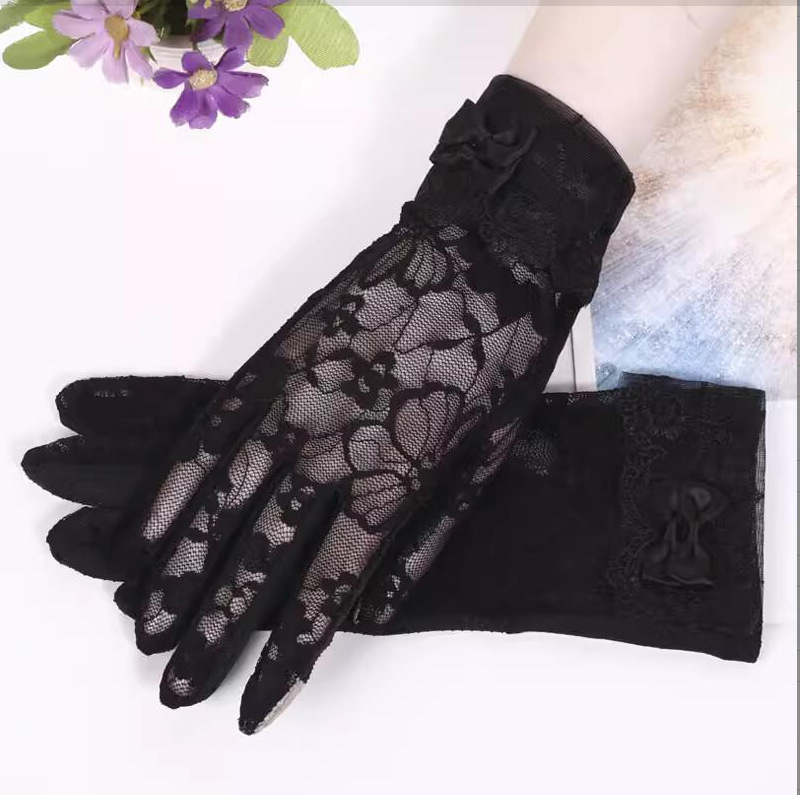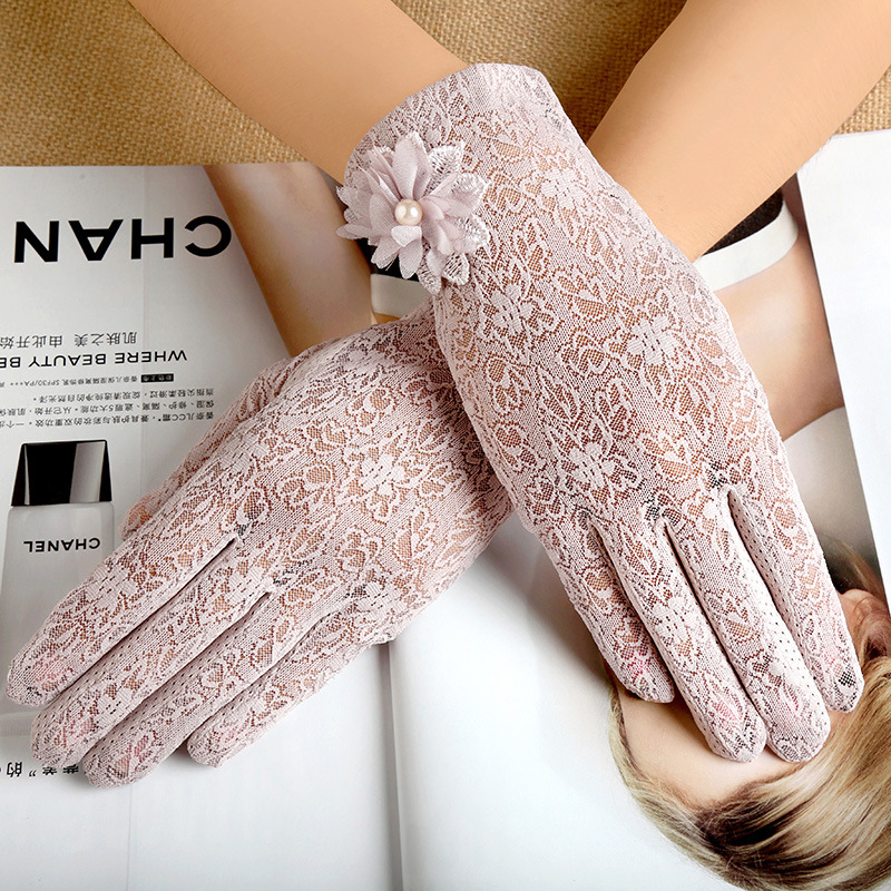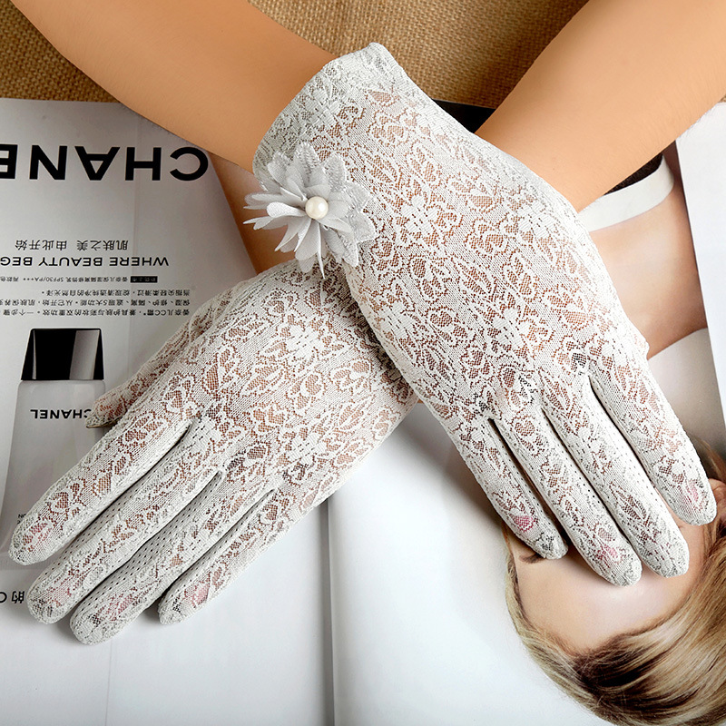 오노 여성용 레이스 대형 꽃무늬 자외선 차단 장갑, 짧은 여름용 전기차 운전용 여성용 미끄럼 방지 터치스크린 가능 여름용스토어 가기