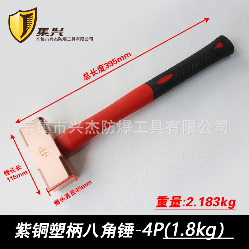 빨간색 구리 팔각형 망치 플라스틱 손잡이 빨간색 구리 망치 빨간색 구리 망치 Jixing 브랜드 0.22 kg-8.1kg