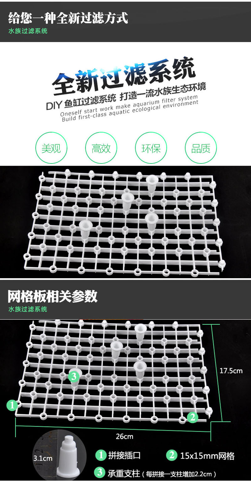 用来DIY底部过滤的垫板,有利水循环;隔离鱼缸内的鱼只;或者作为鱼缸铺底;鱼缸                                                        摆设造景等绝好的小配件。