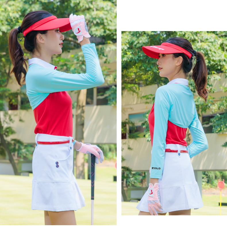 폴로 골프 슬리브 아이스 실크 선 스크린 숄 슬리브 미끄럼 방지 통기성 탑 야외 사이클링 여성 의류스토어 가기