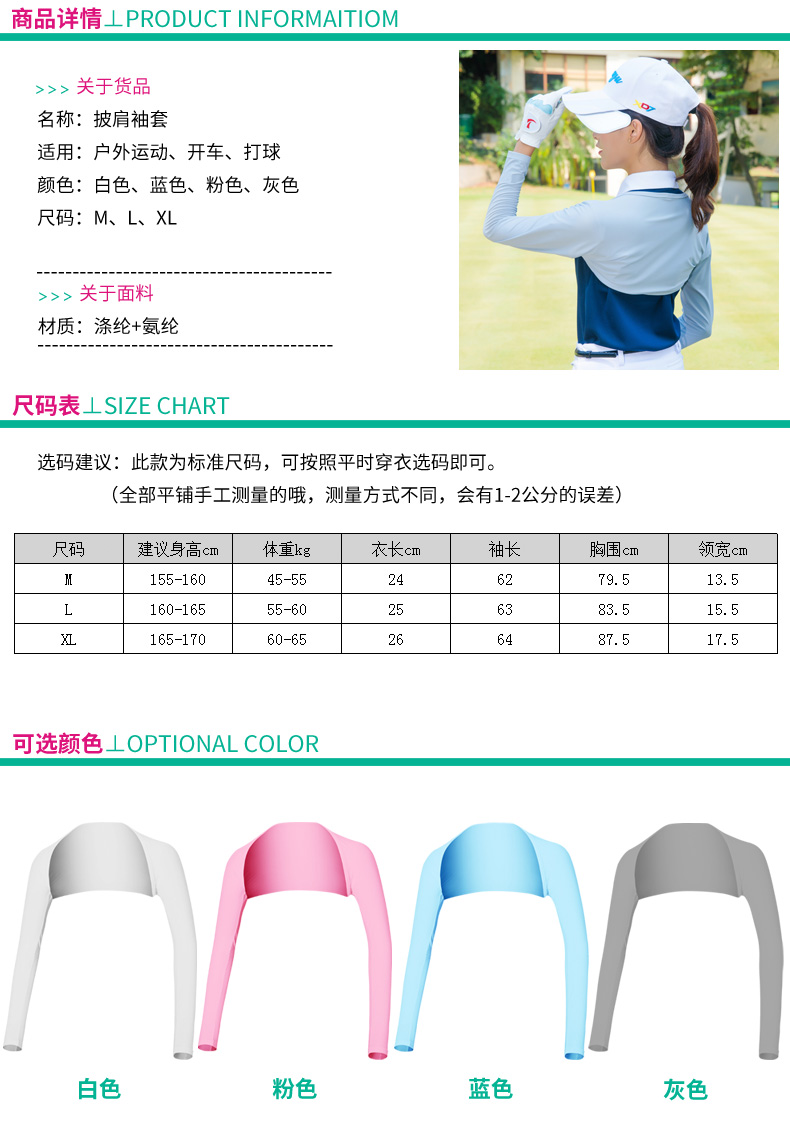 폴로 골프 슬리브 아이스 실크 선 스크린 숄 슬리브 미끄럼 방지 통기성 탑 야외 사이클링 여성 의류