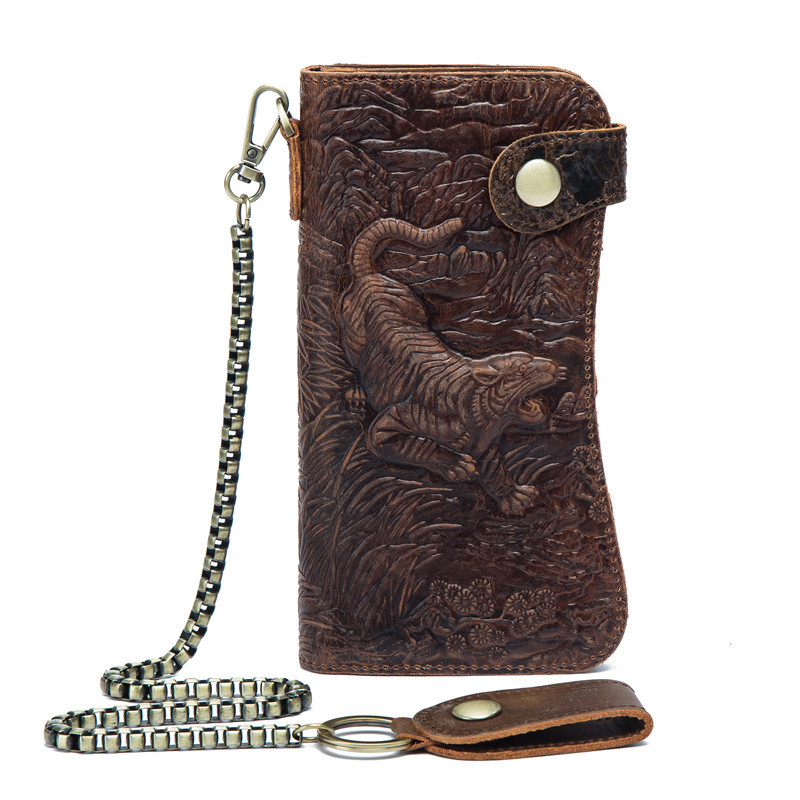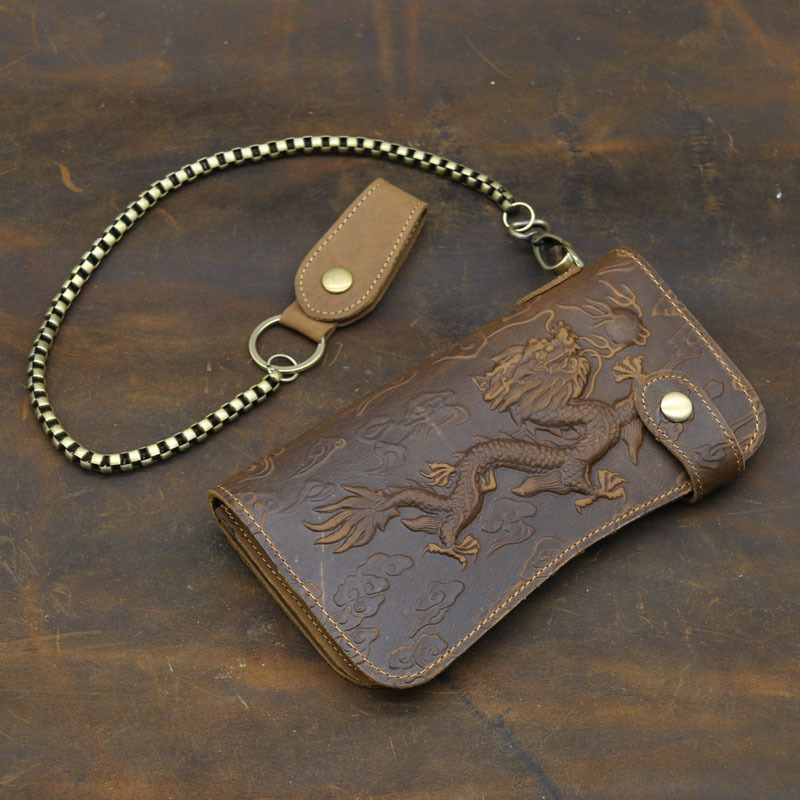 B161RFID 탈기 방지 도난 방지 브러시 철 체인 도난 방지 크레이지 호스 가죽 지갑 레트로 스타일 탑 레이어 소가죽 손 지갑스토어 가기