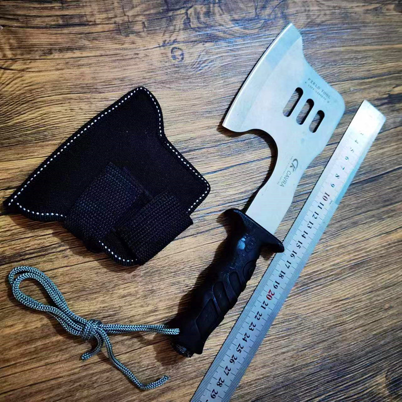 说明:该斧头采用厚度3.5mm钢材制作中,锋利结实。配送厚实尼龙斧套。