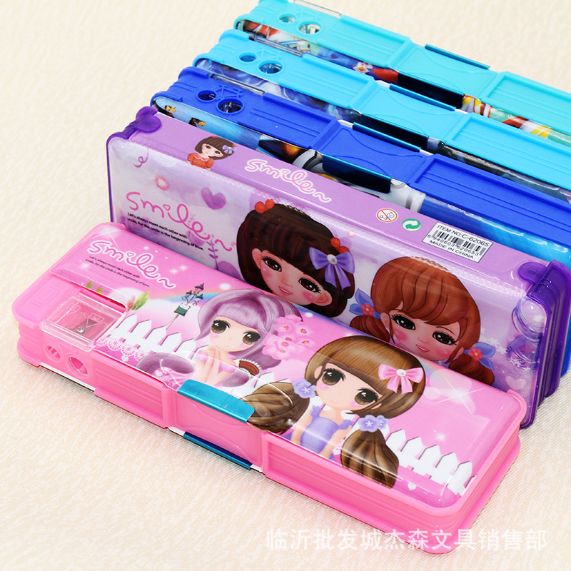 【特点】:卡通图案、多功能带卷笔刀、双面开合