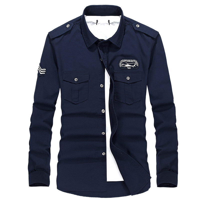 가을 2021 새로운 남자의 캐주얼 긴 소매 셔츠 공군 하나 순면 슬림 군사 플러스 사이즈 탑
